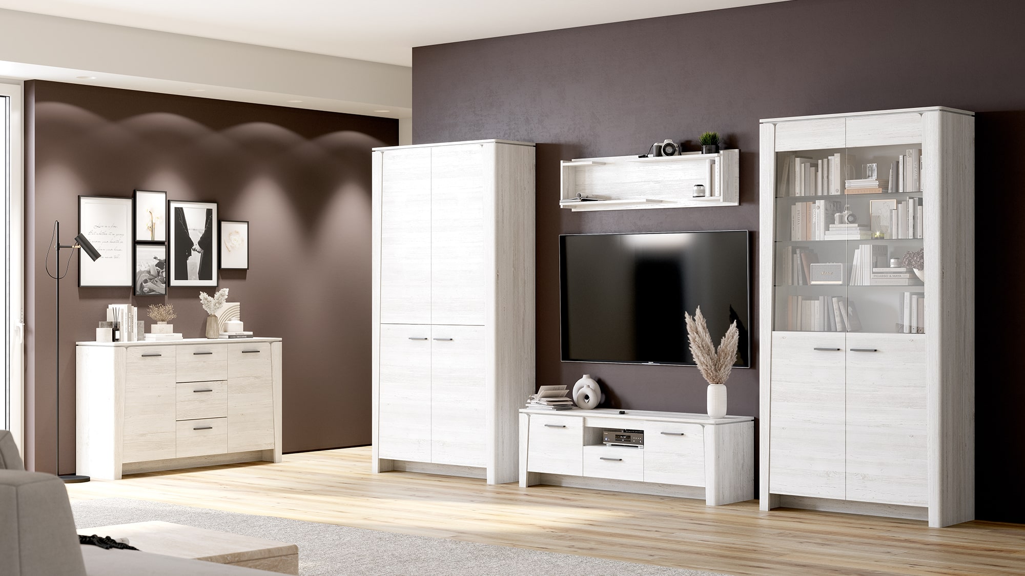 Двухдверный шкаф - витрина "Мальта" выполнен в натуральных оттенках, он подойдет как для классической, так и для современной гостиной.