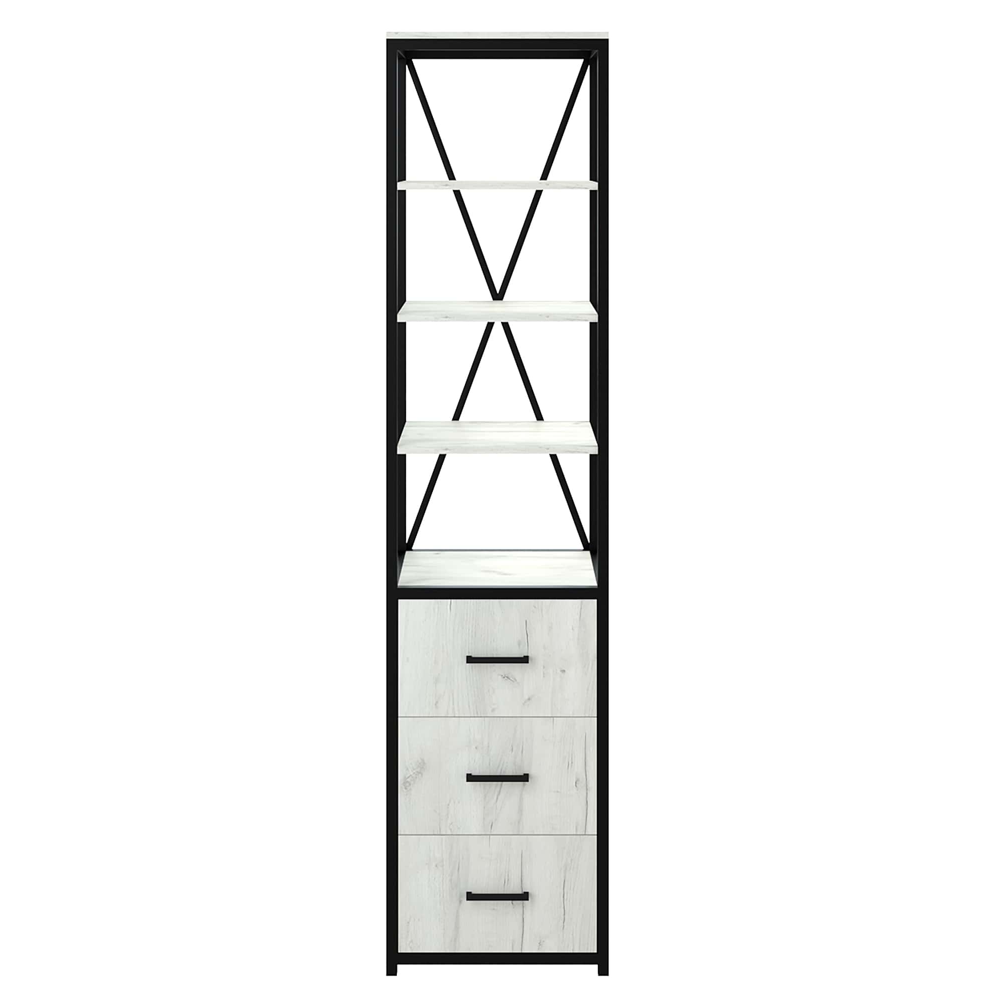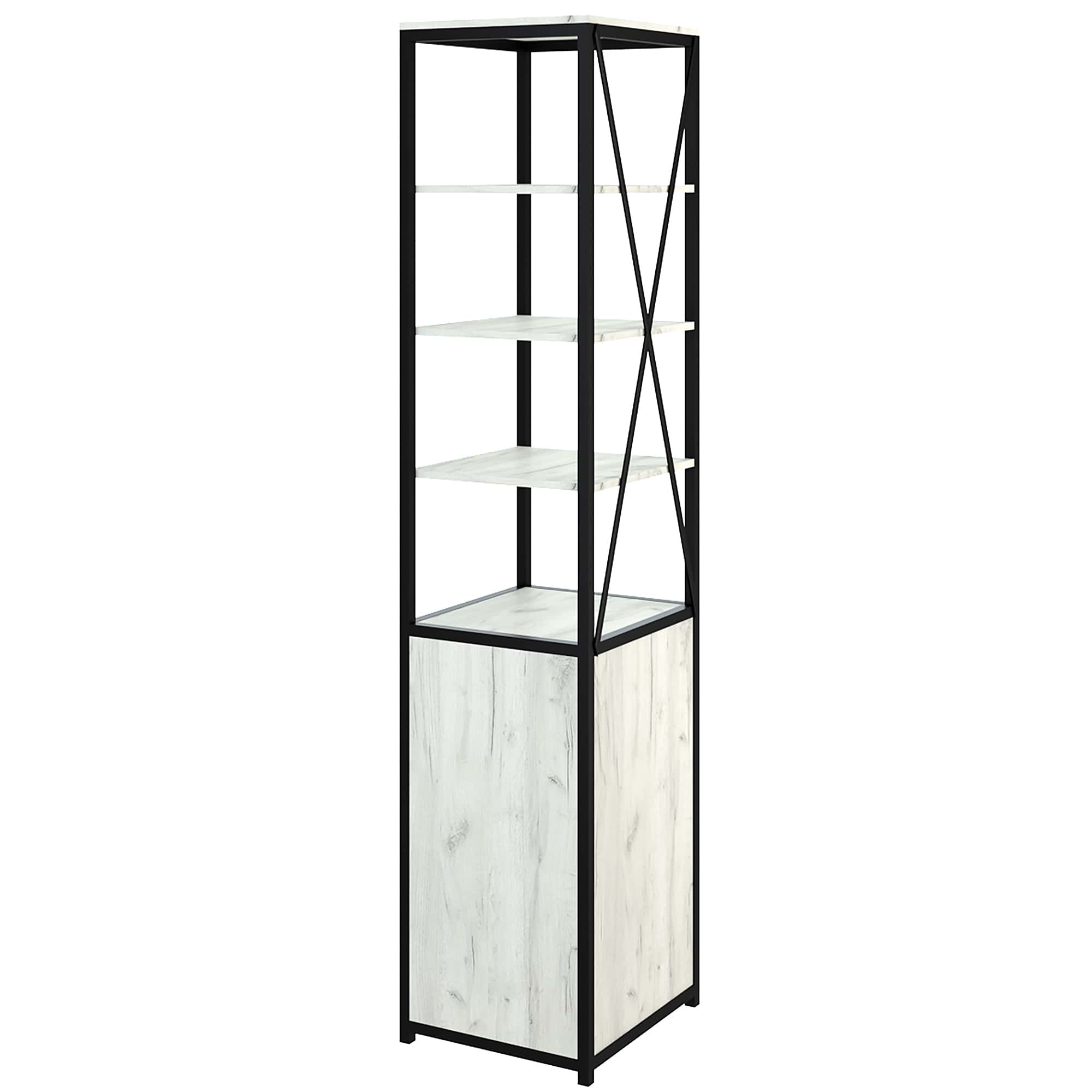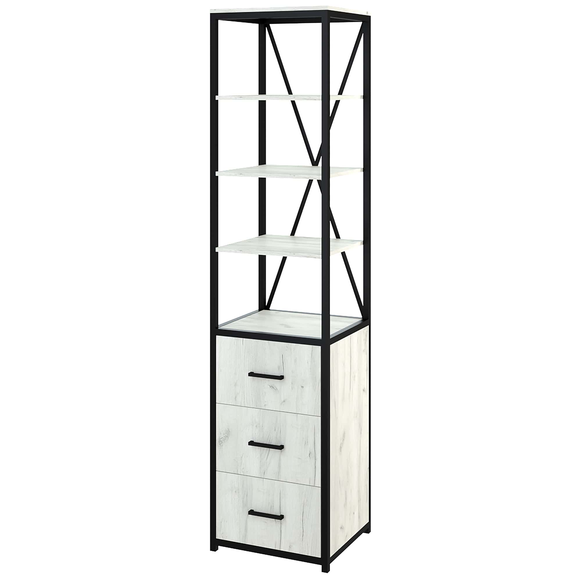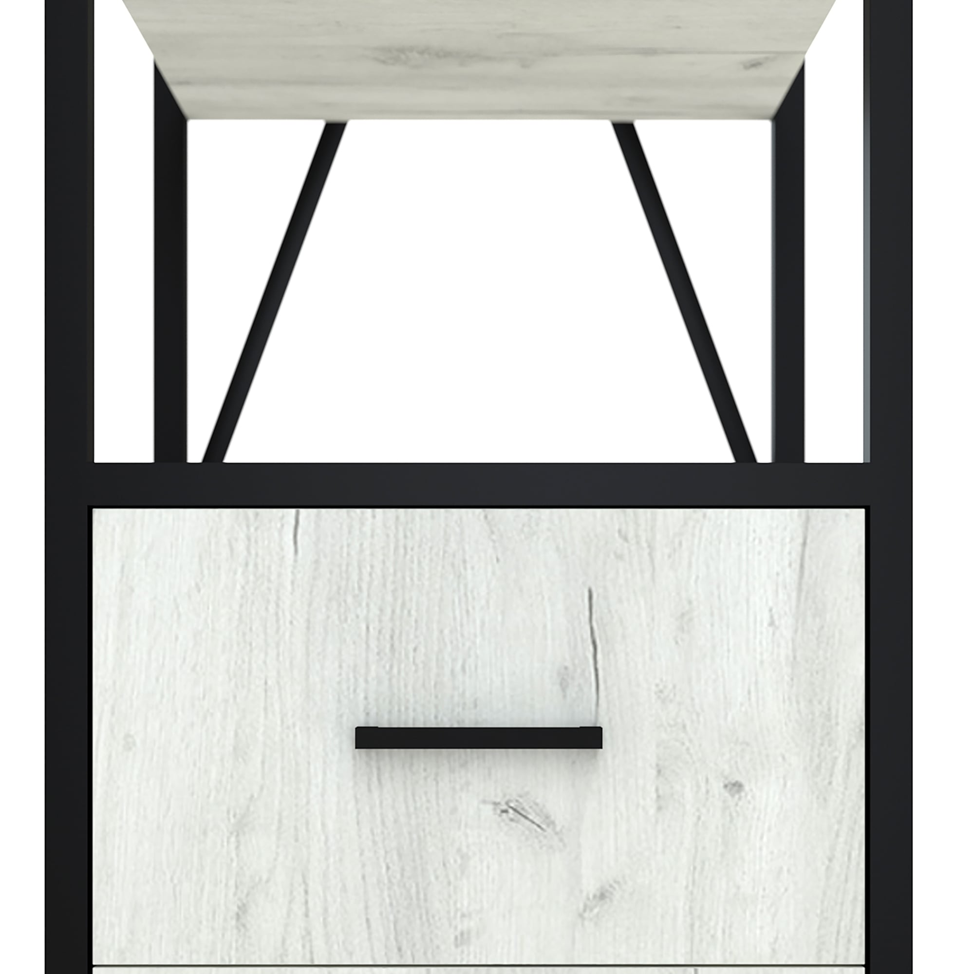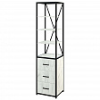 Каркас из трубы 25х25 мм., порошковое покрытие черный муар, ЛДСП 16 мм, цвет дуб белый, кромка 2мм, направляющие скрытого монтажа с доводчиком, ручка скоба.