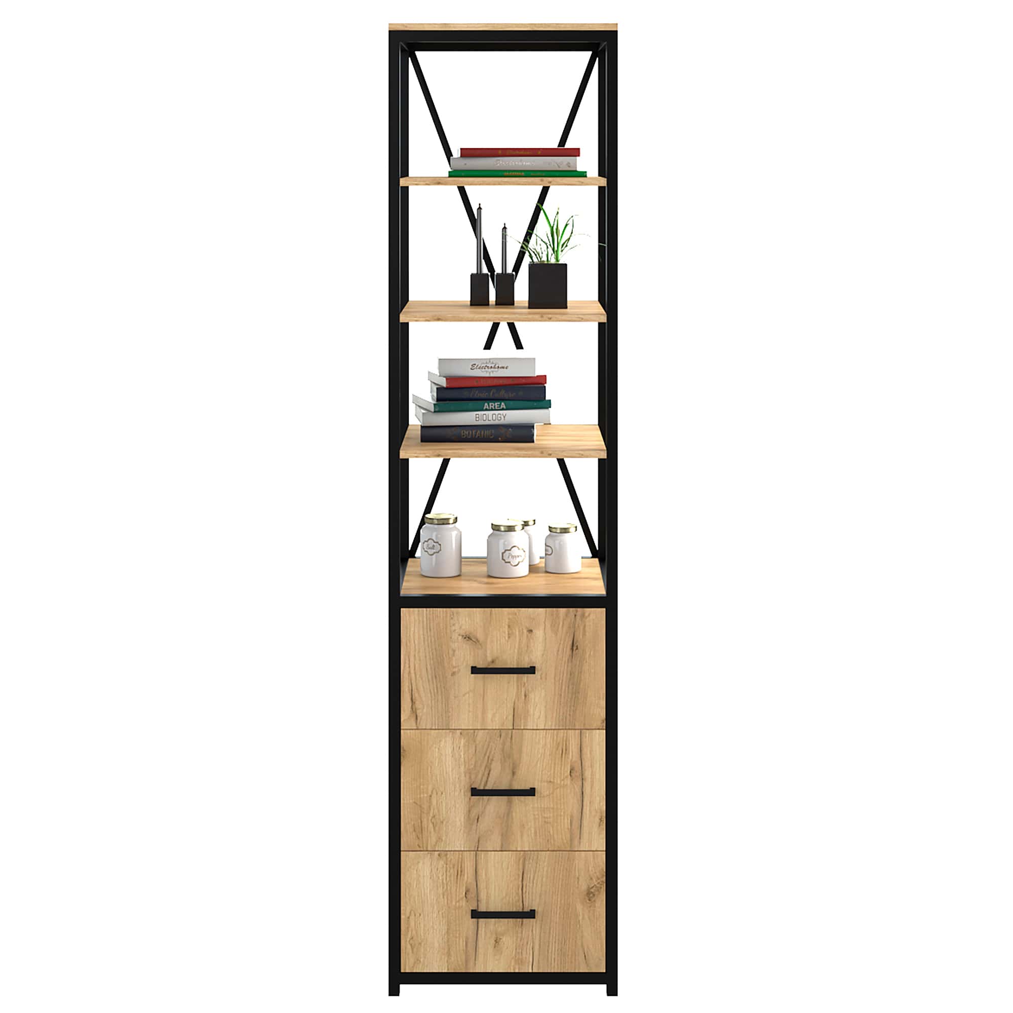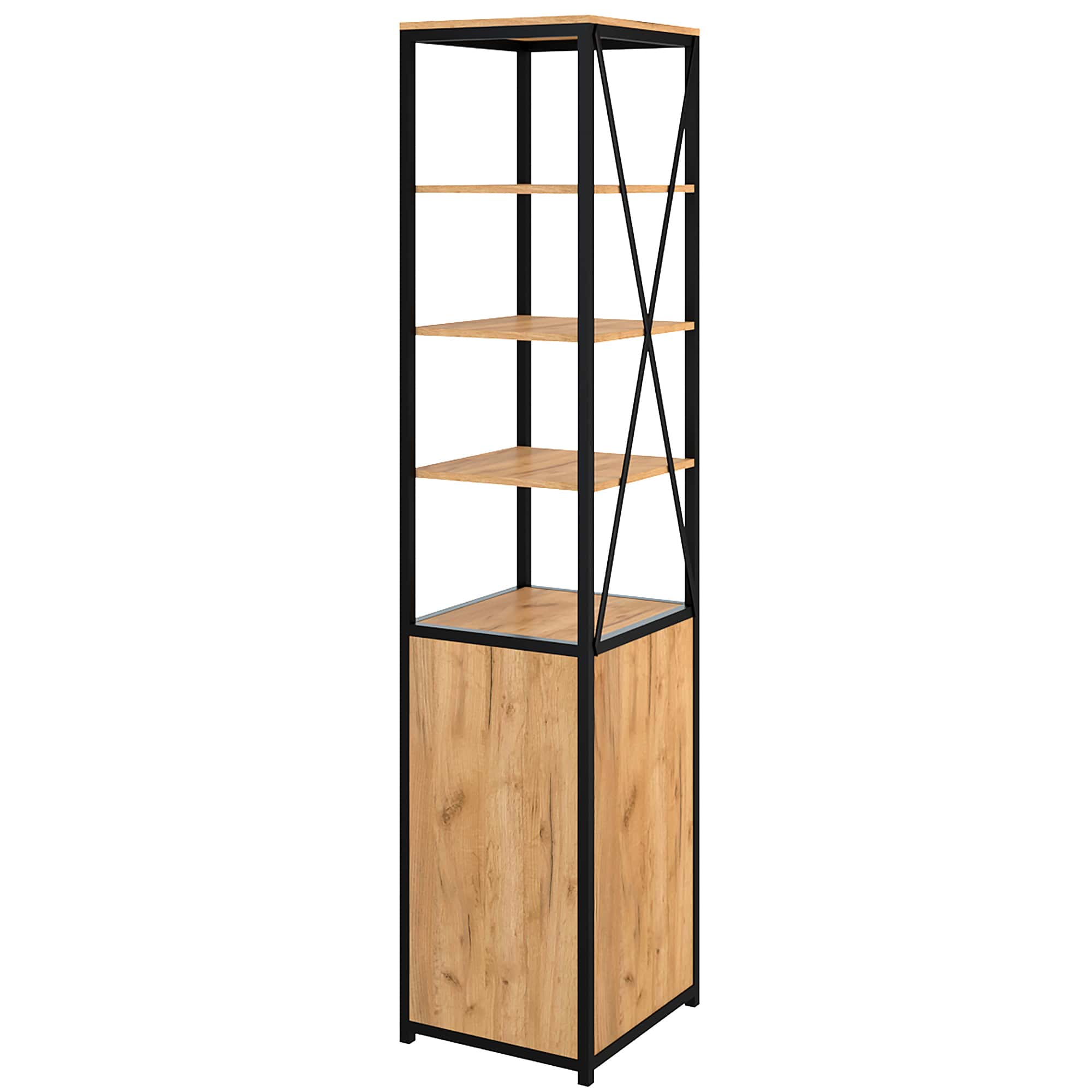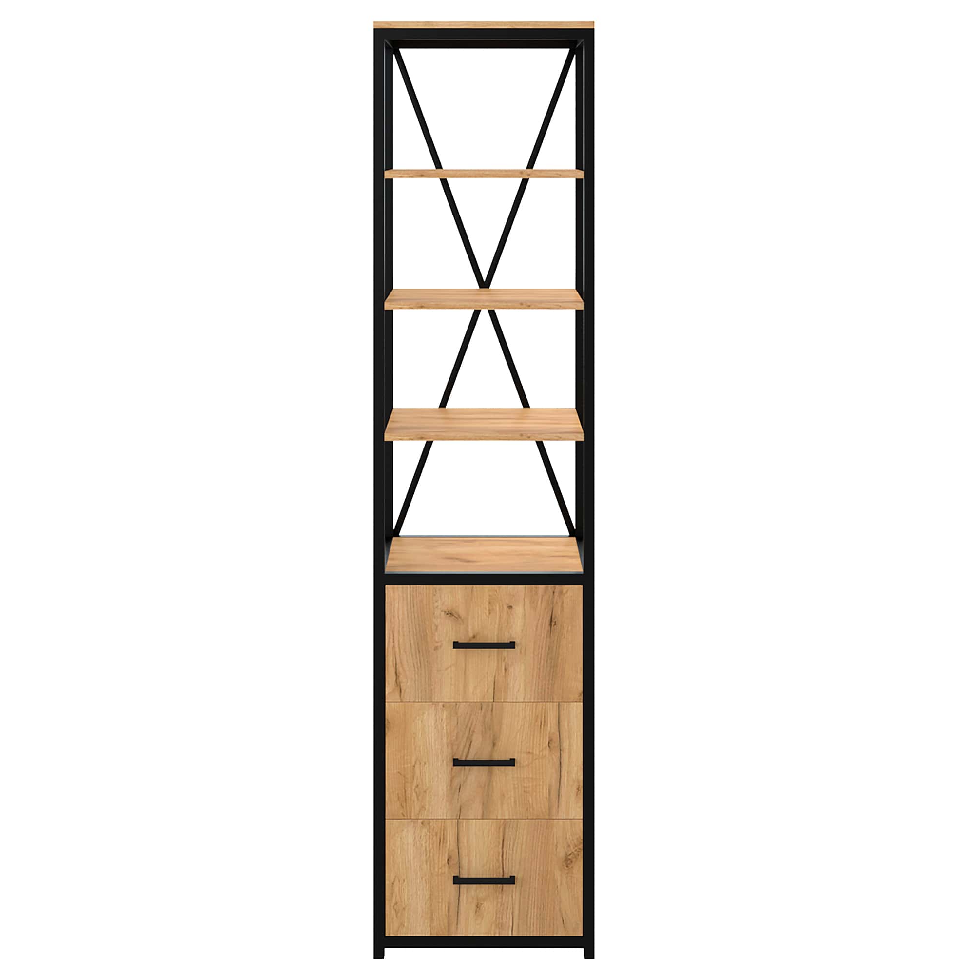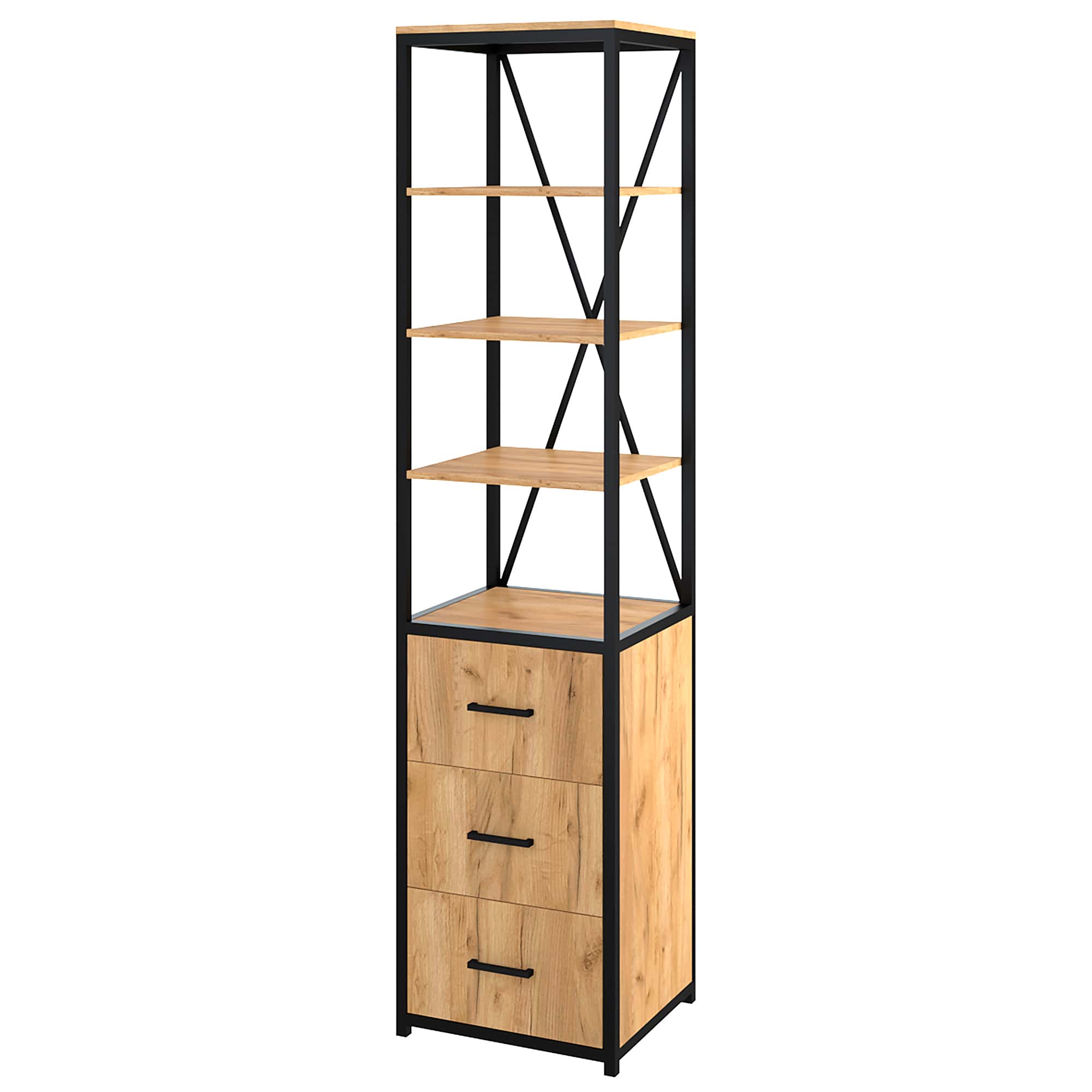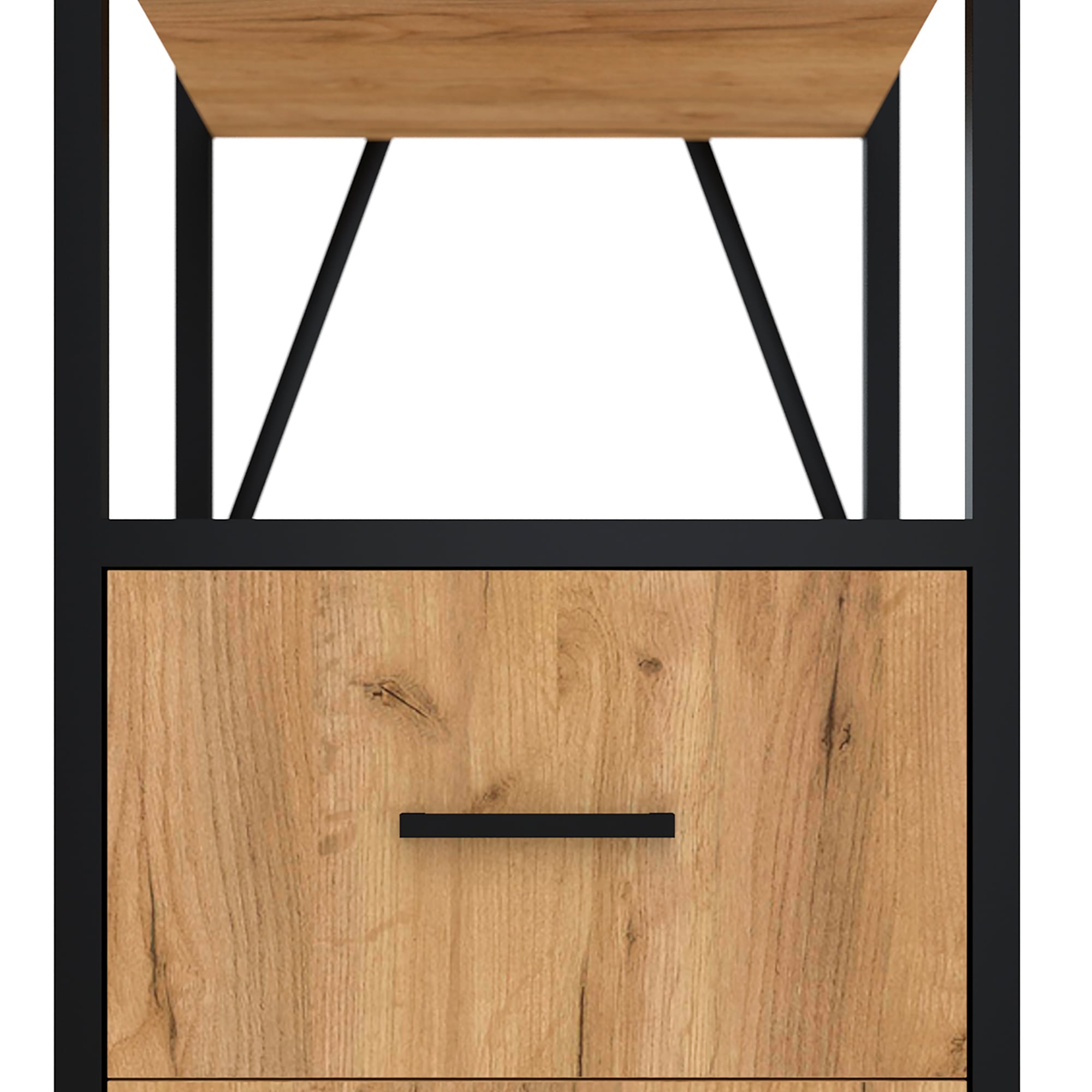 Каркас из трубы 25х25 мм., порошковое покрытие черный муар, ЛДСП 16 мм, цвет дуб табачный, кромка 2мм, направляющие скрытого монтажа с доводчиком, ручка скоба.