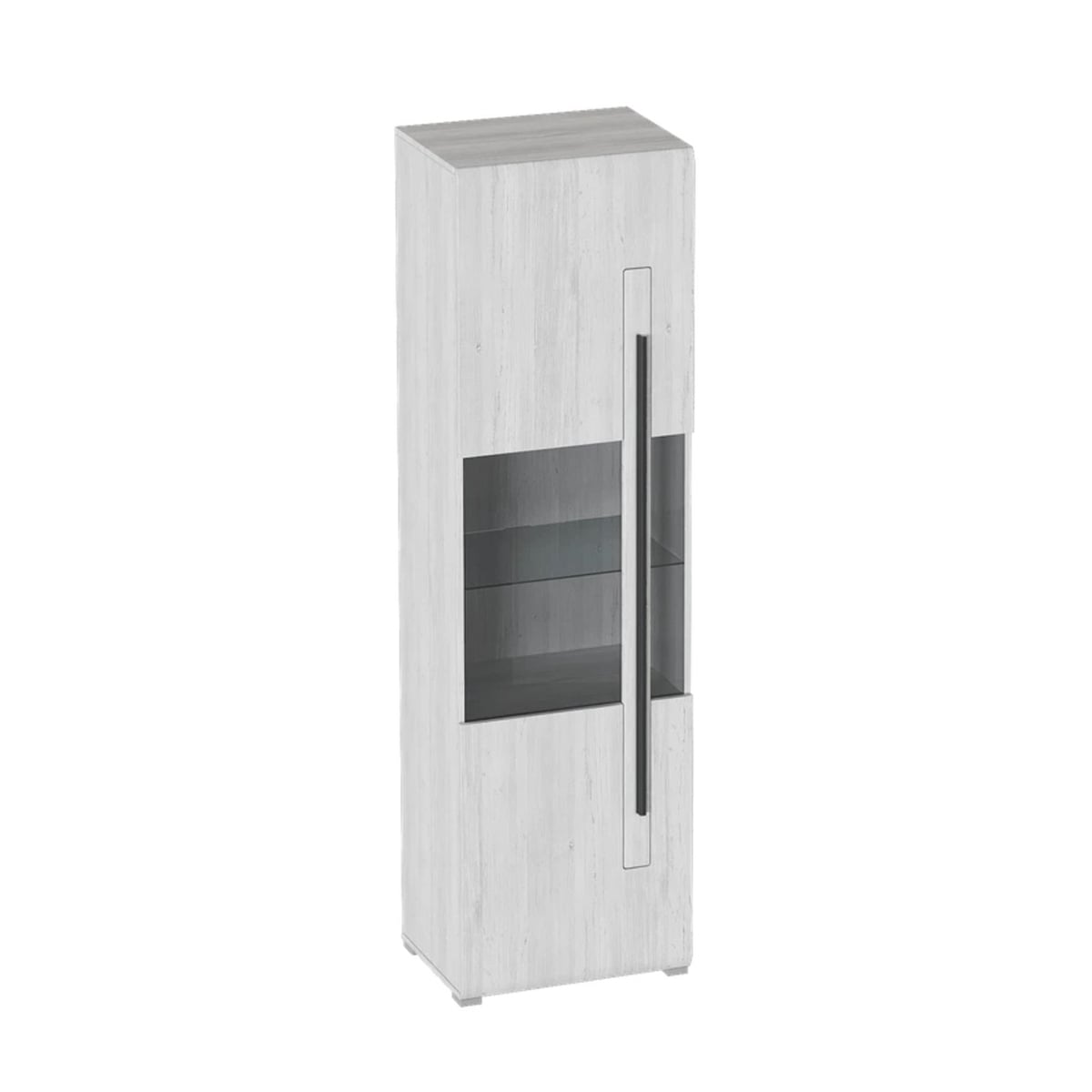 Внутреннее пространство шкафа разделено на три отсека, закрываемые одной общей дверью с затемненным стеклом. В верхнем и нижнем отделении расположено по одной стационарной полке. В среднем отделении расположена стеклянная съемная полка.