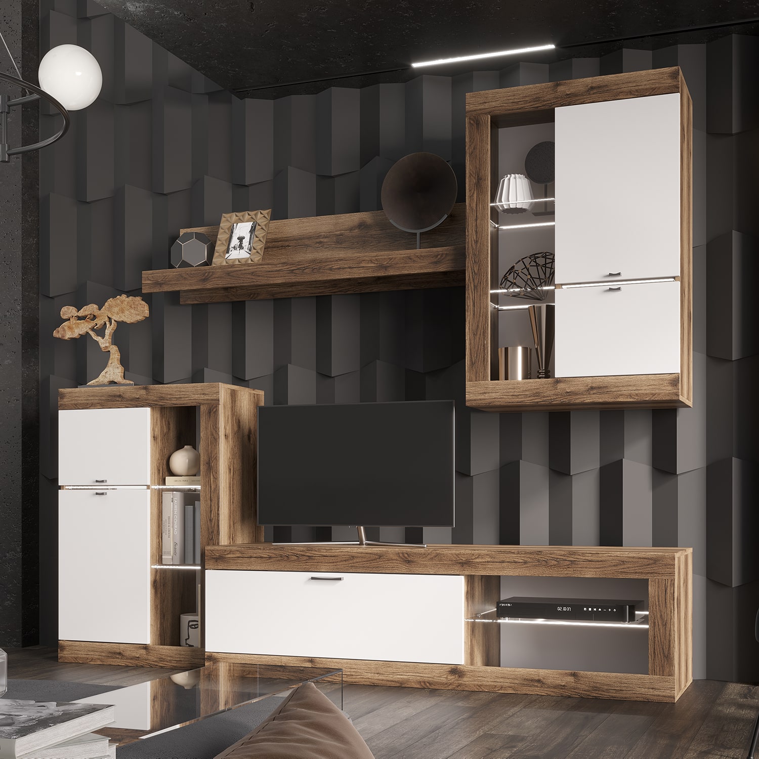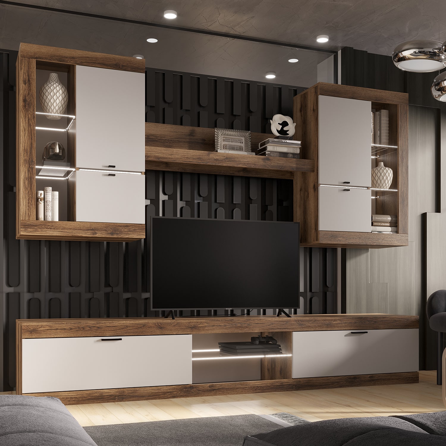 Гостиная Прага гармонично впишется в любой интерьер, а возможность подсветки создаст атмосферу комфорта.