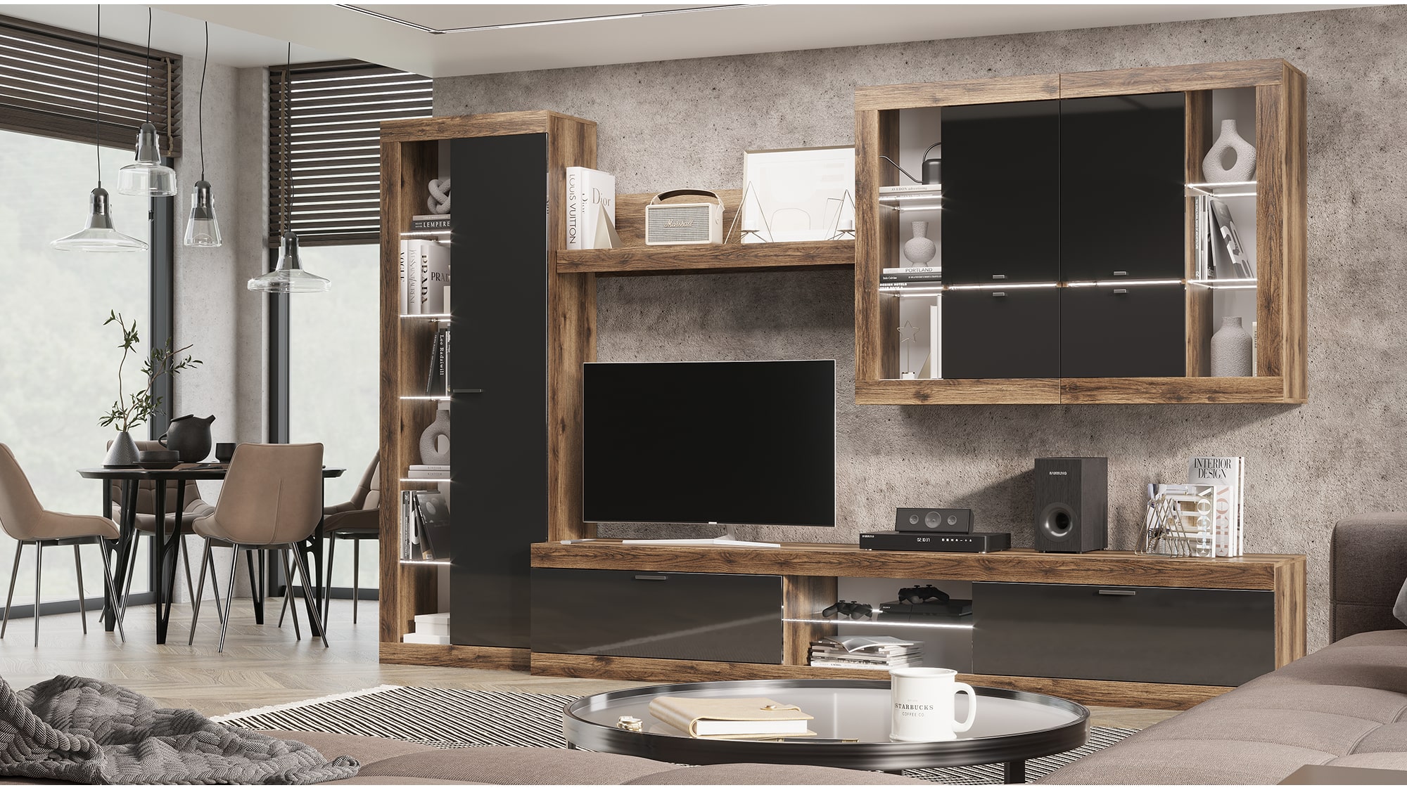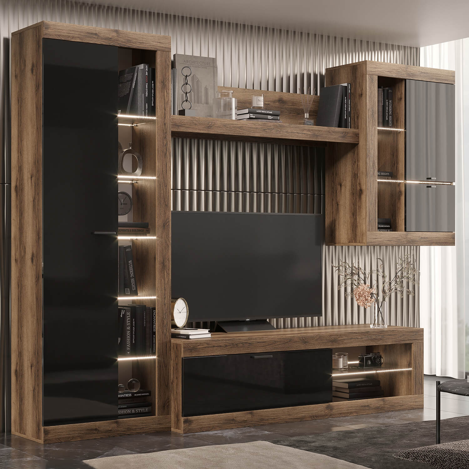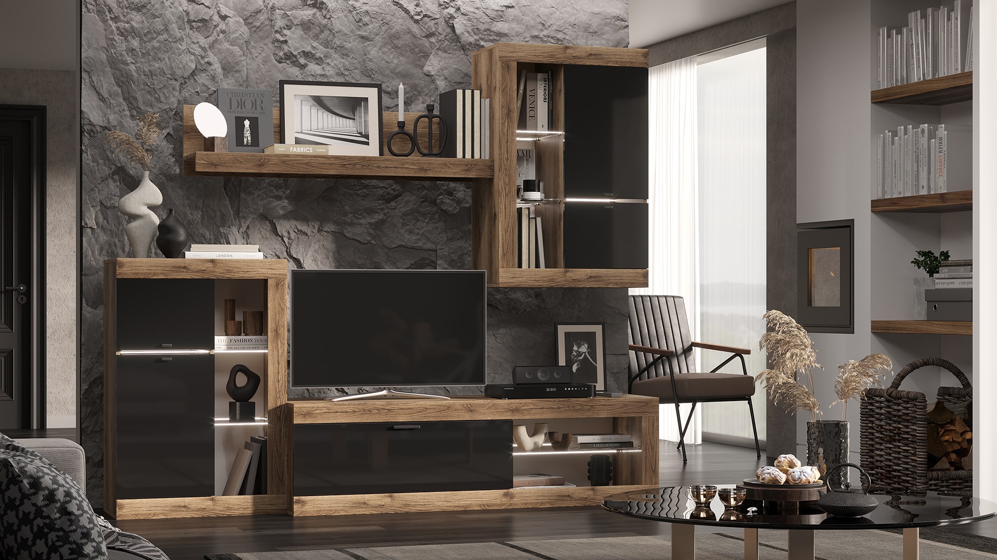Гостиная Прага гармонично впишется в любой интерьер, а возможность подсветки создаст атмосферу комфорта.