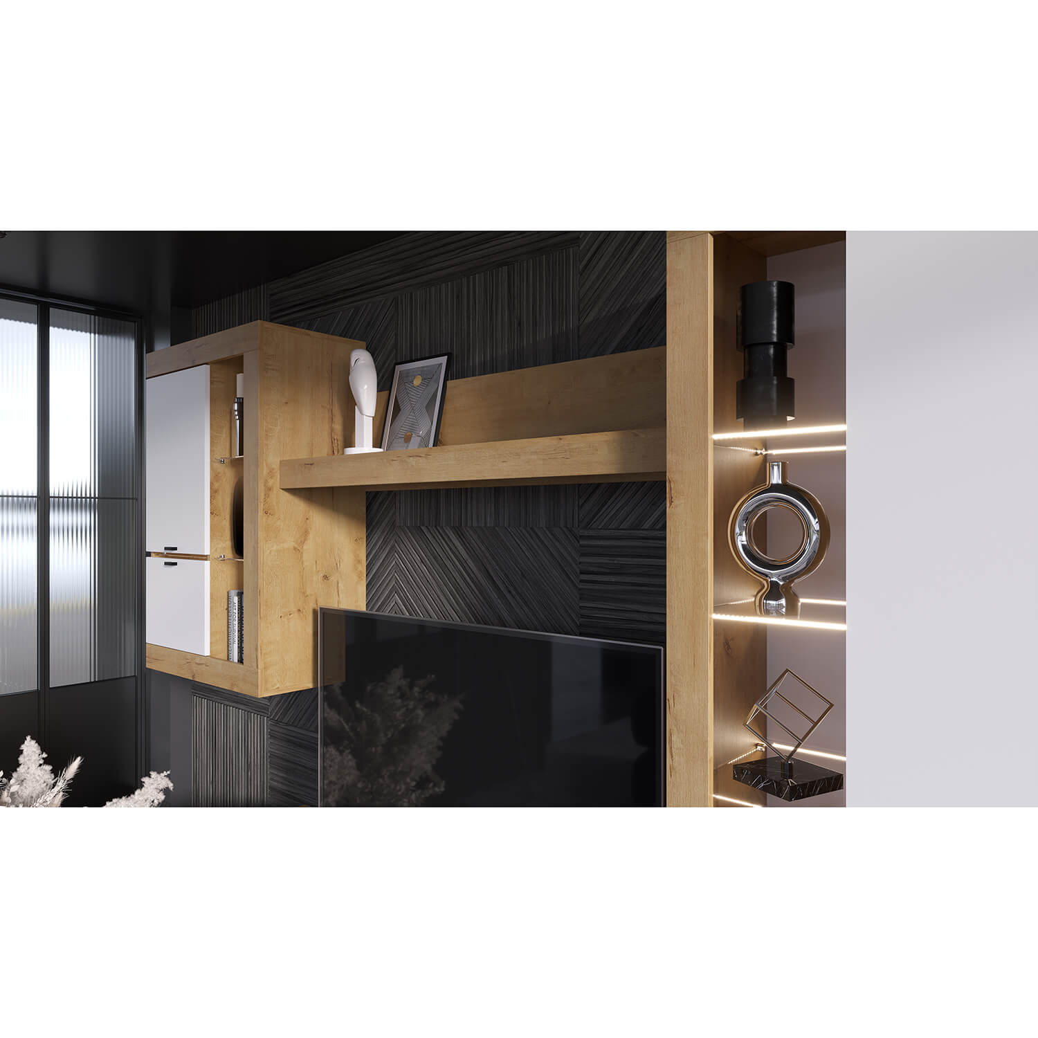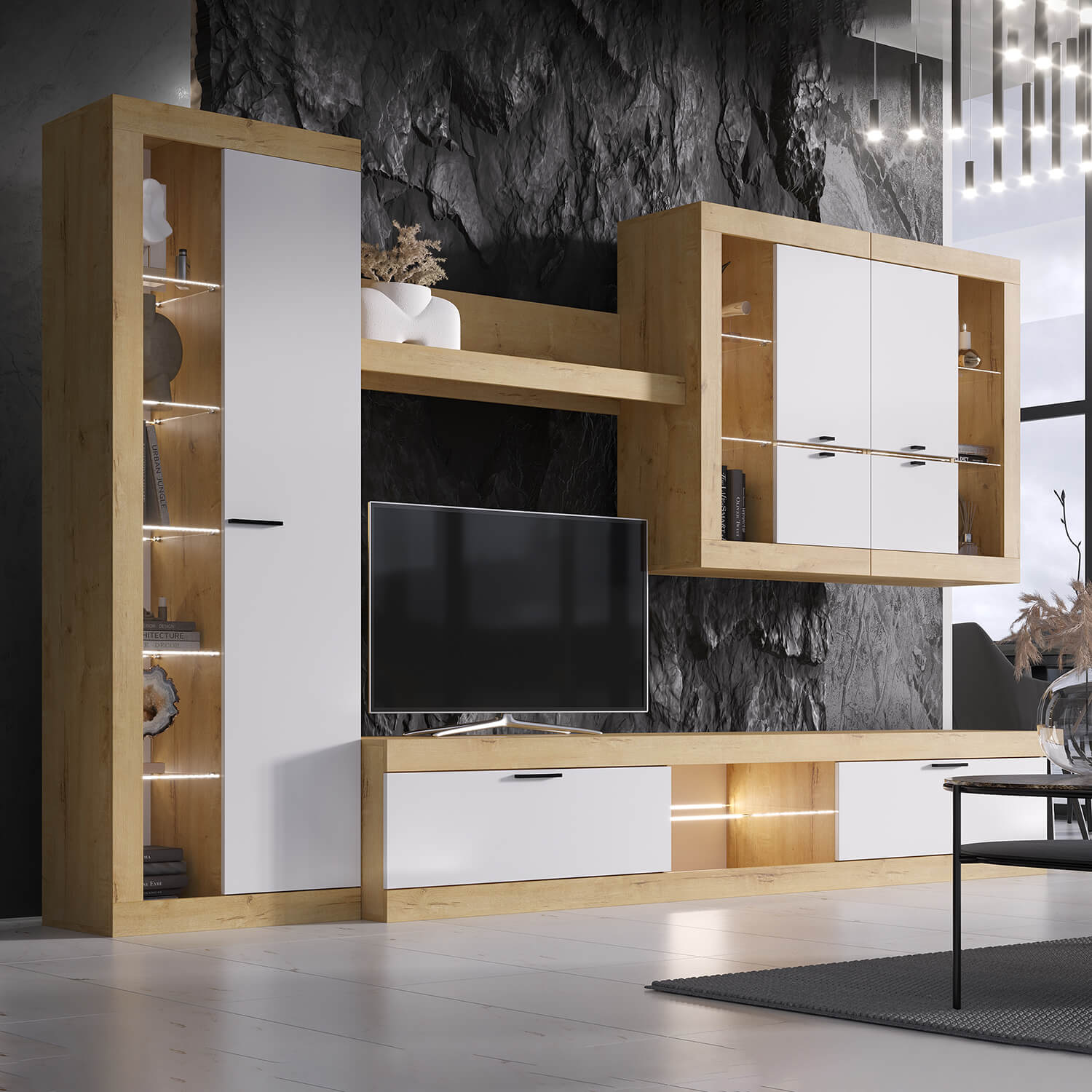 Гостиная Прага гармонично впишется в любой интерьер, а возможность подсветки создаст атмосферу комфорта.