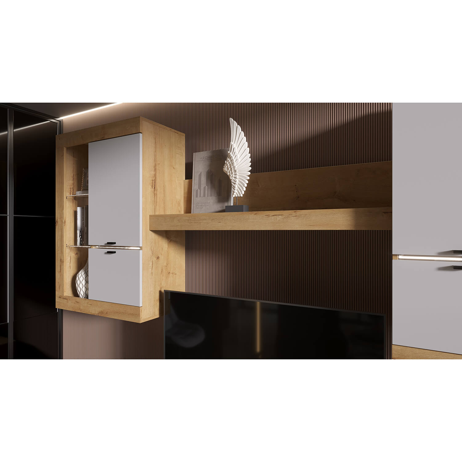 Шкаф-витрина универсальная ПРАГА Дуб Вотан/Белый гладкий