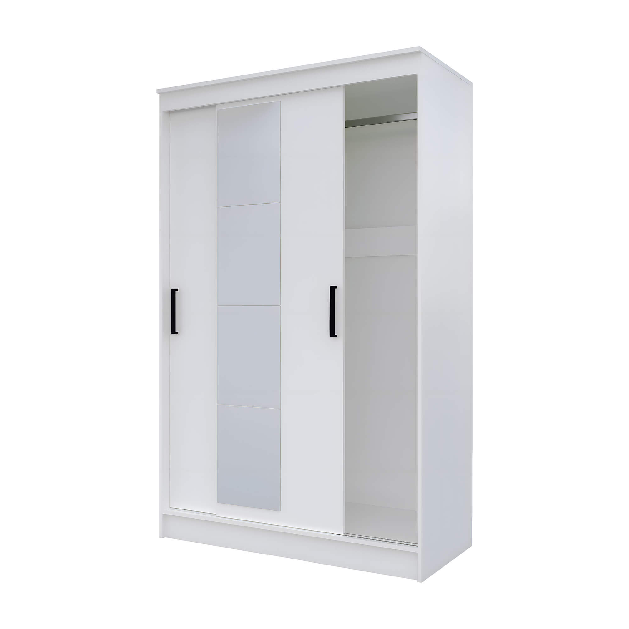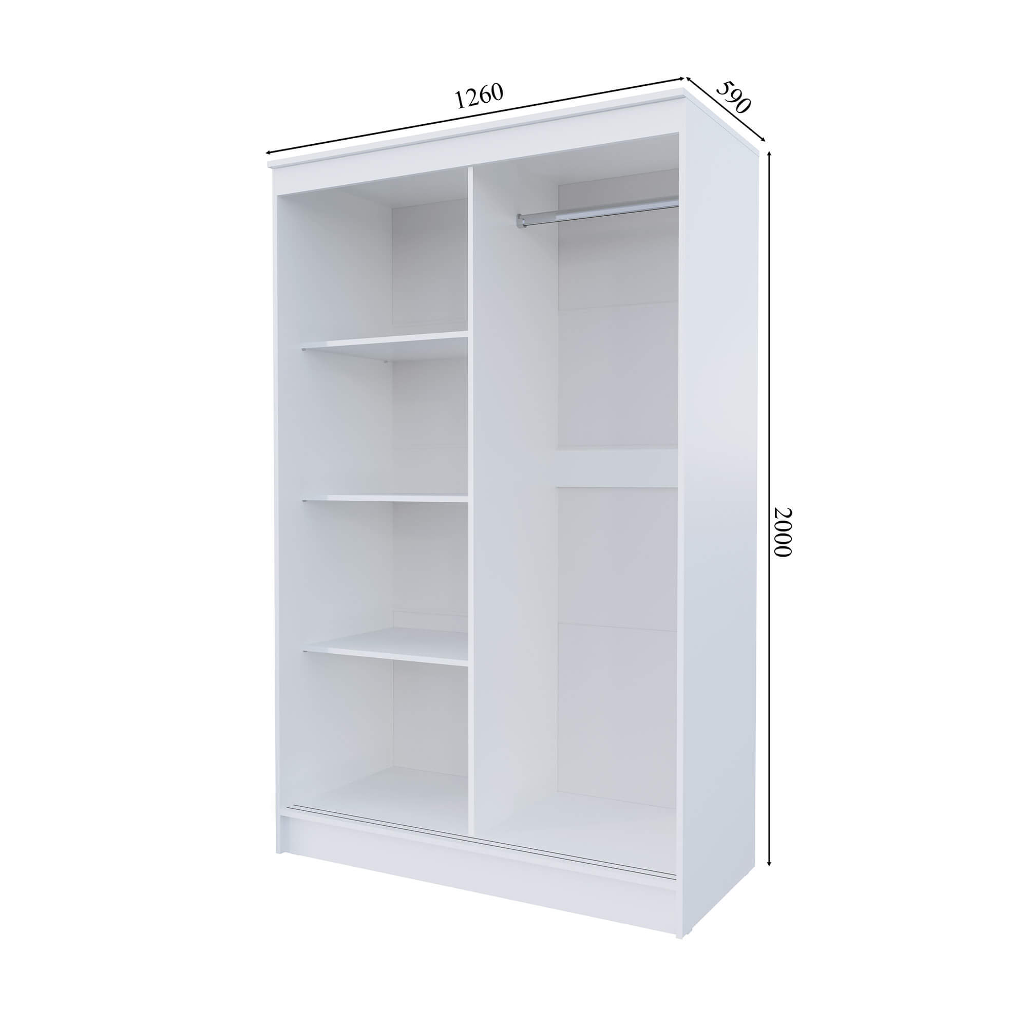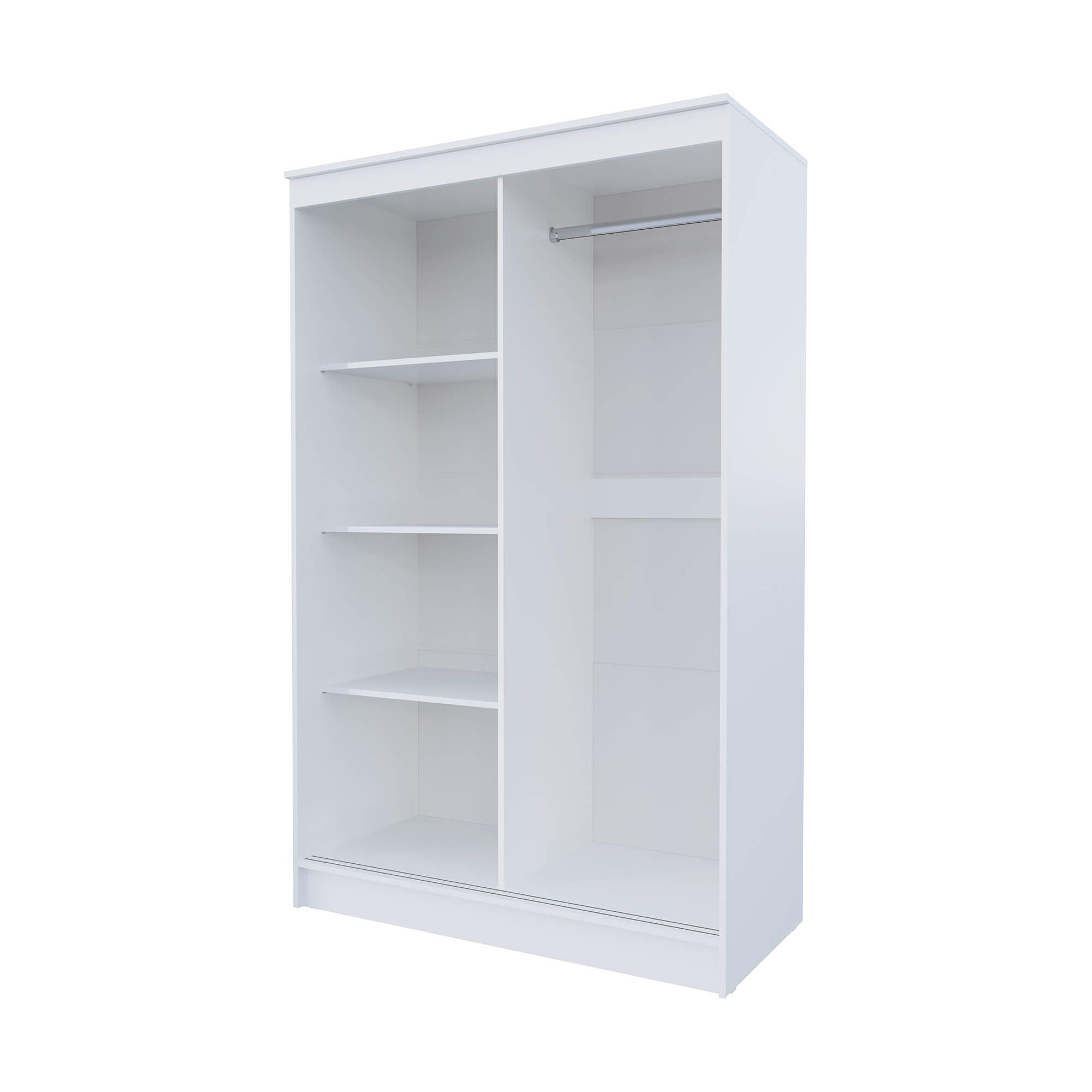 Внутреннее пространство шкафа разделено на две секции. В одной из них расположена штанга для вешалок, а в другой - три полки. Это позволяет удобно разместить одежду и аксессуары.