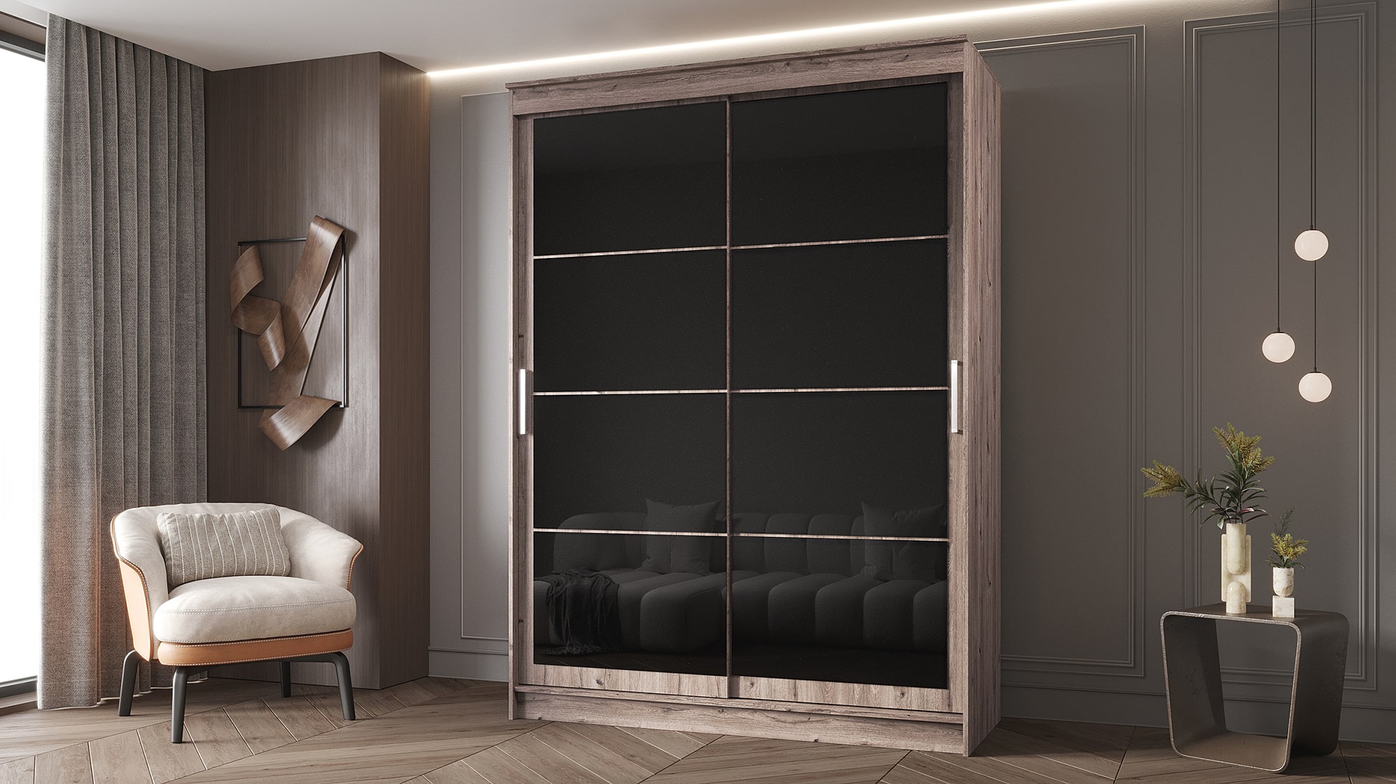 Шкаф-купе ГРАНД 1 1,6 Дуб горный/Лакобель черный доступен к заказу в различных вариантах исполнения цвета фасада и корпуса, среди которых каждый сможет найти подходящий своему интерьеру.