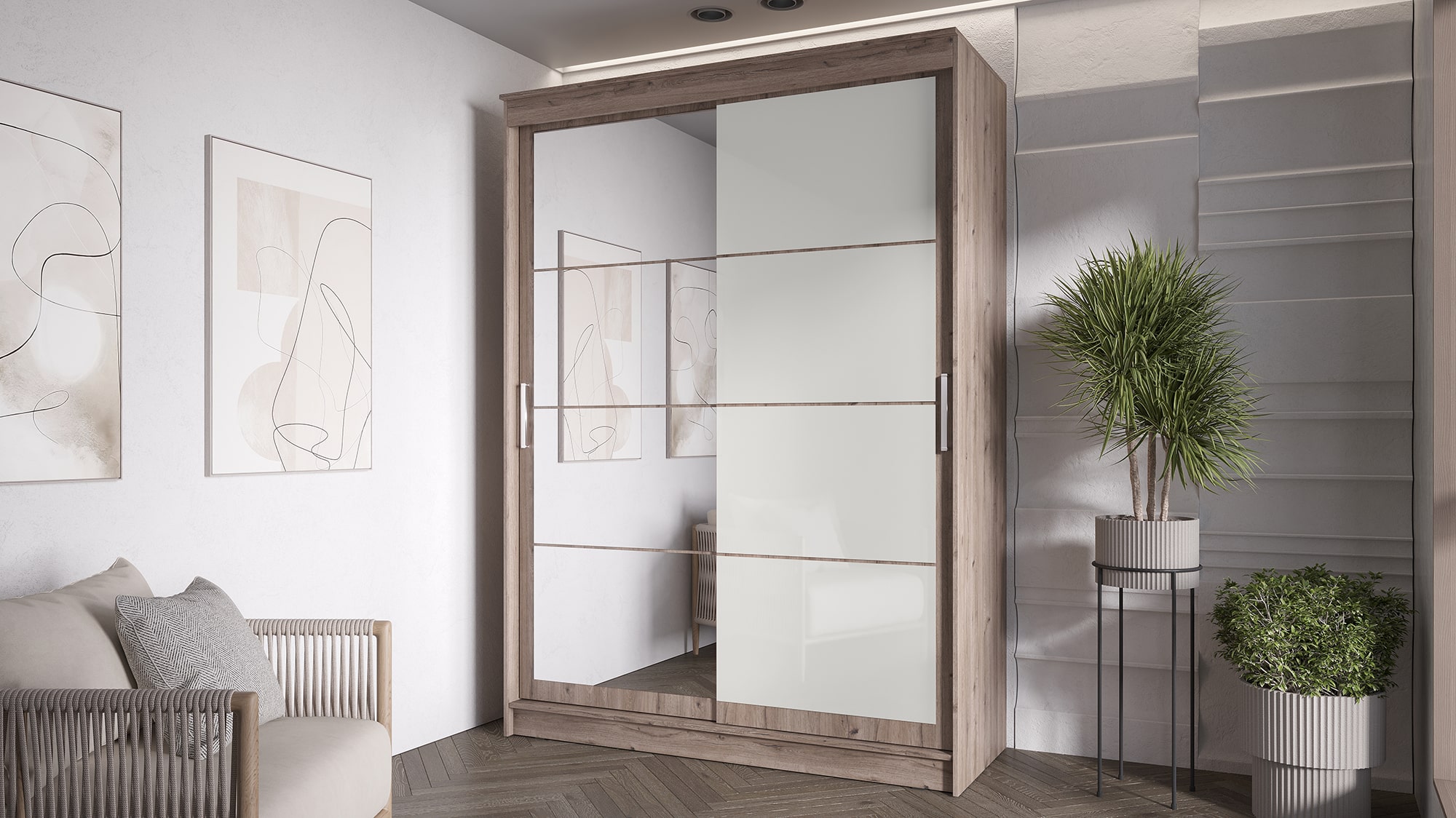 Шкаф-купе ГРАНД 1 1,6 Дуб горный/Зеркало/Лакобель белый, материал корпуса - ЛДСП. Производитель - ЭРА.