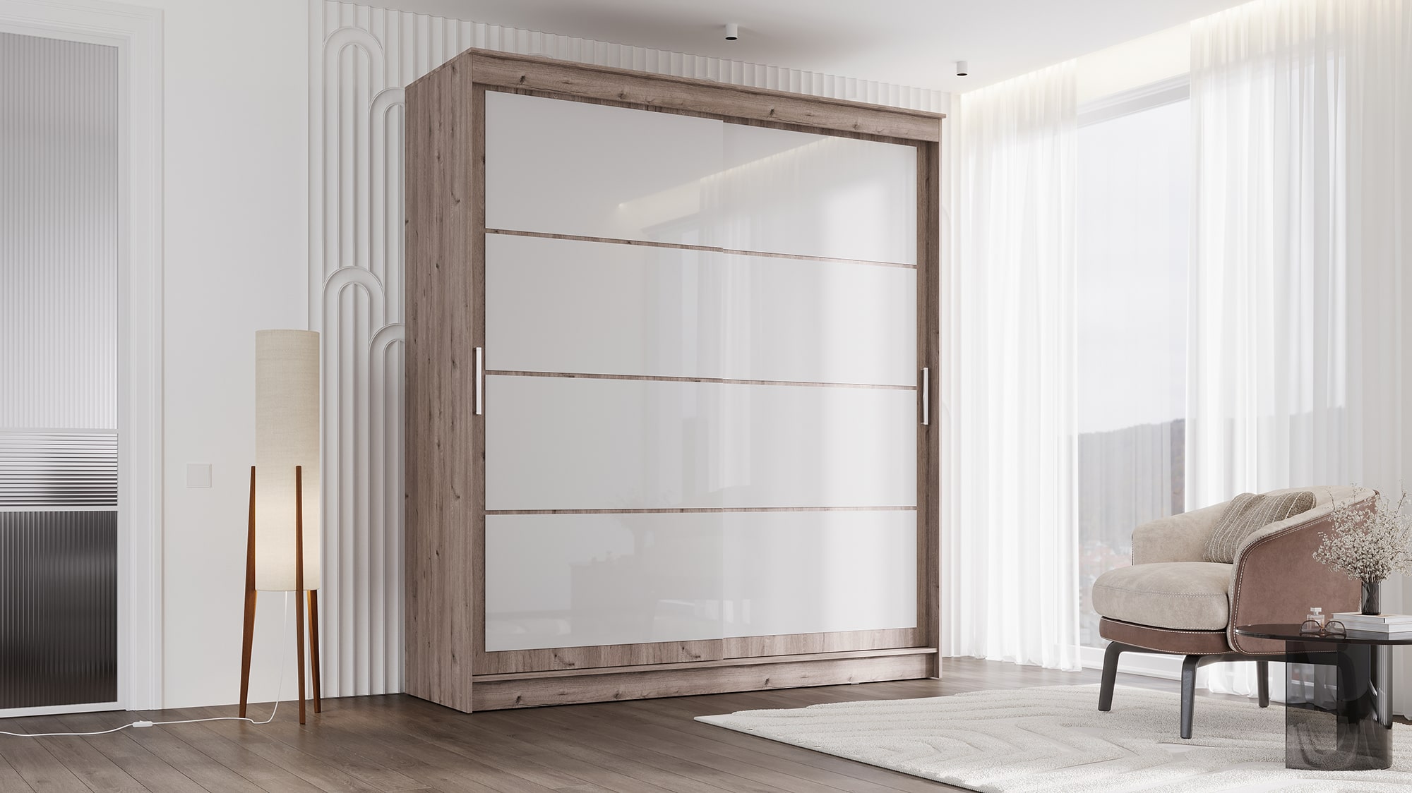Шкаф-купе ГРАНД 1 2,0 Дуб горный/Лакобель белый доступен к заказу в различных вариантах исполнения цвета фасада и корпуса, среди которых каждый сможет найти подходящий своему интерьеру.