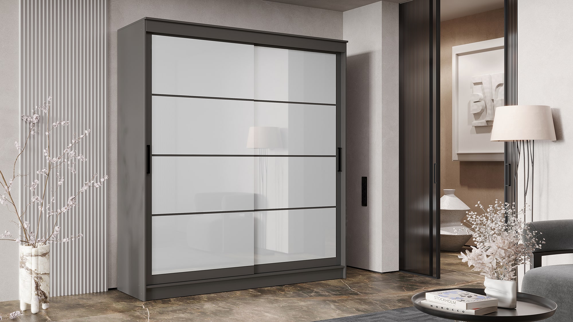 Шкаф-купе ГРАНД 1 2,0 Графит/Лакобель белый доступен к заказу в различных вариантах исполнения цвета фасада и корпуса, среди которых каждый сможет найти подходящий своему интерьеру.