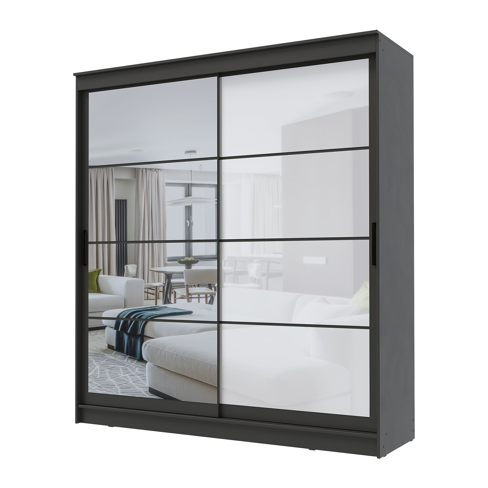 Шкаф-купе ГРАНД 1 2,0 Графит/Зеркало/Лакобель белый доступен к заказу в различных вариантах исполнения цвета фасада и корпуса, среди которых каждый сможет найти подходящий своему интерьеру.