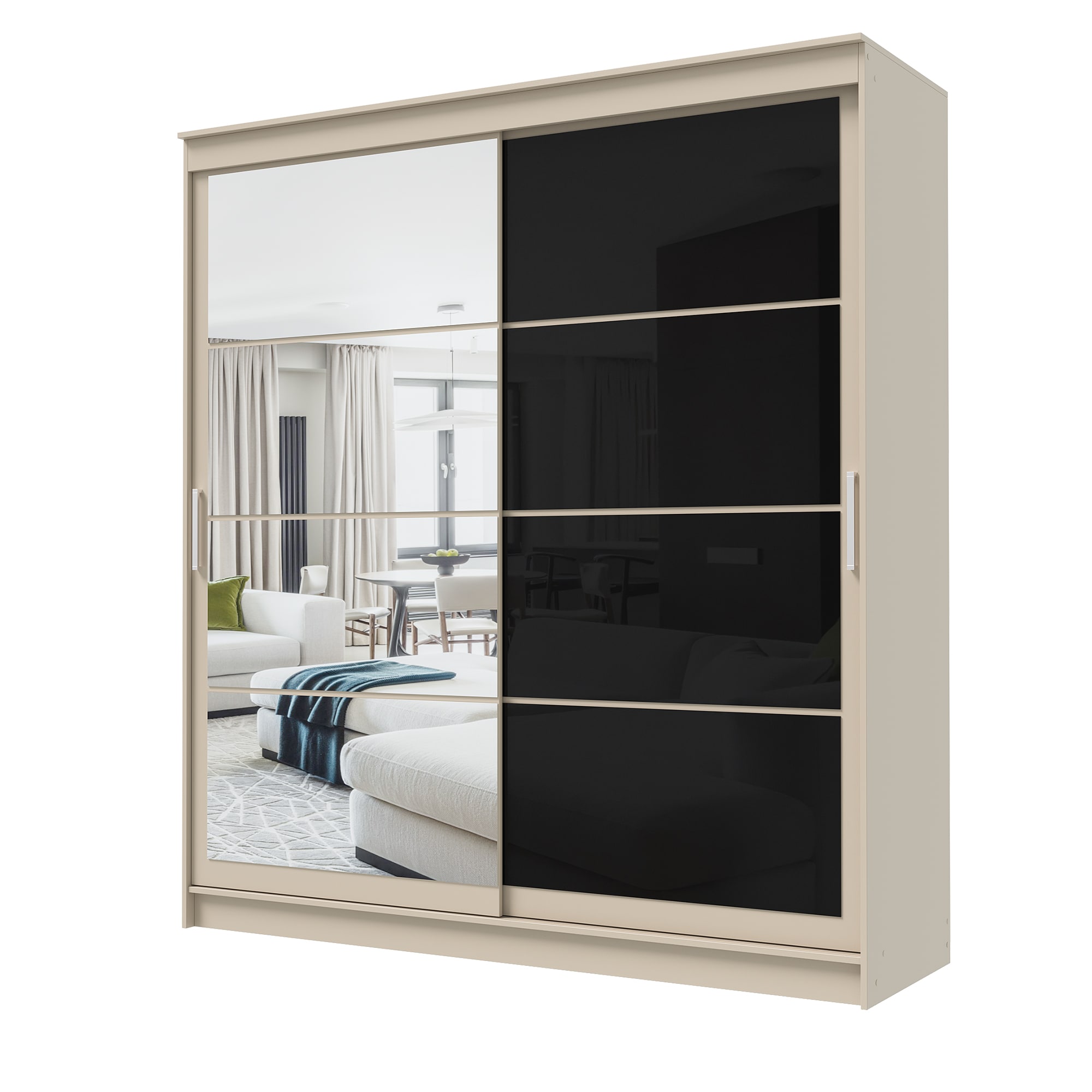 Шкаф-купе ГРАНД 1 2,0 Сатин/Зеркало/Лакобель черный доступен к заказу в различных вариантах исполнения цвета фасада и корпуса, среди которых каждый сможет найти подходящий своему интерьеру.