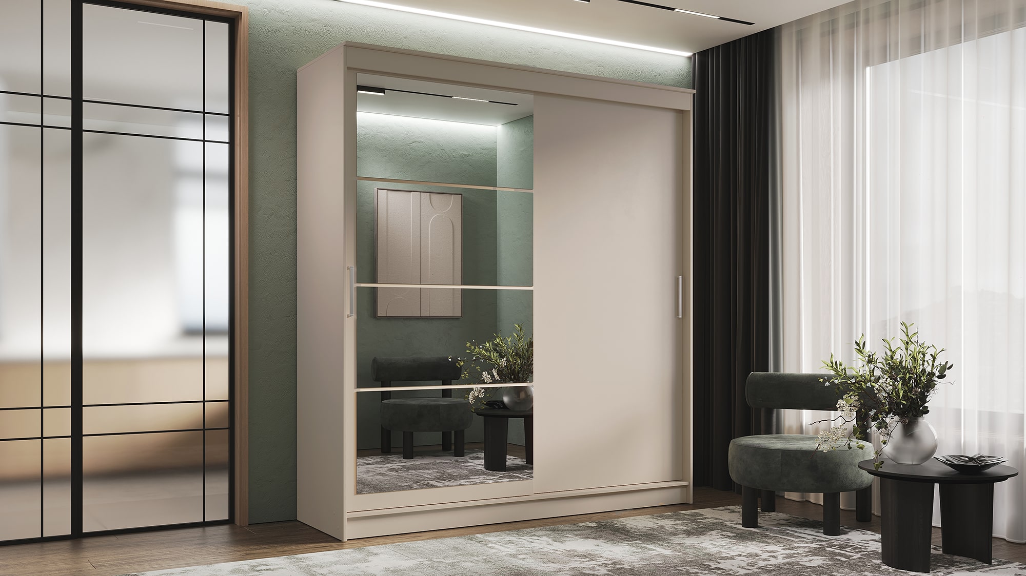 Шкаф-купе ГРАНД 1 2,0 Сатин/Зеркало/Сатин ЛДСП доступен к заказу в различных вариантах исполнения цвета фасада и корпуса, среди которых каждый сможет найти подходящий своему интерьеру.