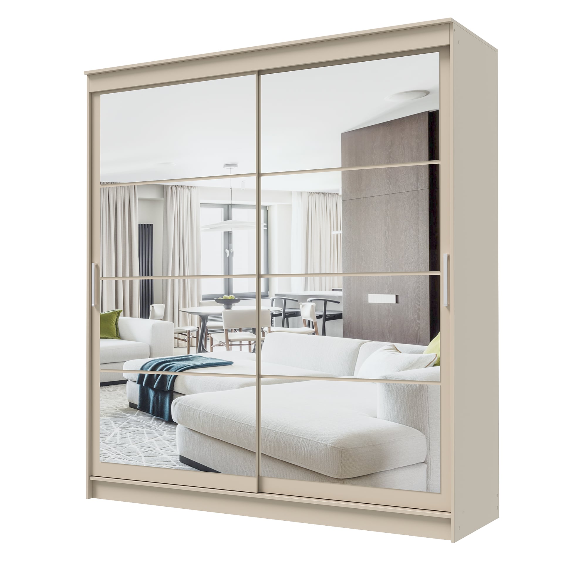 Шкаф-купе ГРАНД 1 2,0 Сатин/Зеркало/Зеркало доступен к заказу в различных вариантах исполнения цвета фасада и корпуса, среди которых каждый сможет найти подходящий своему интерьеру.
