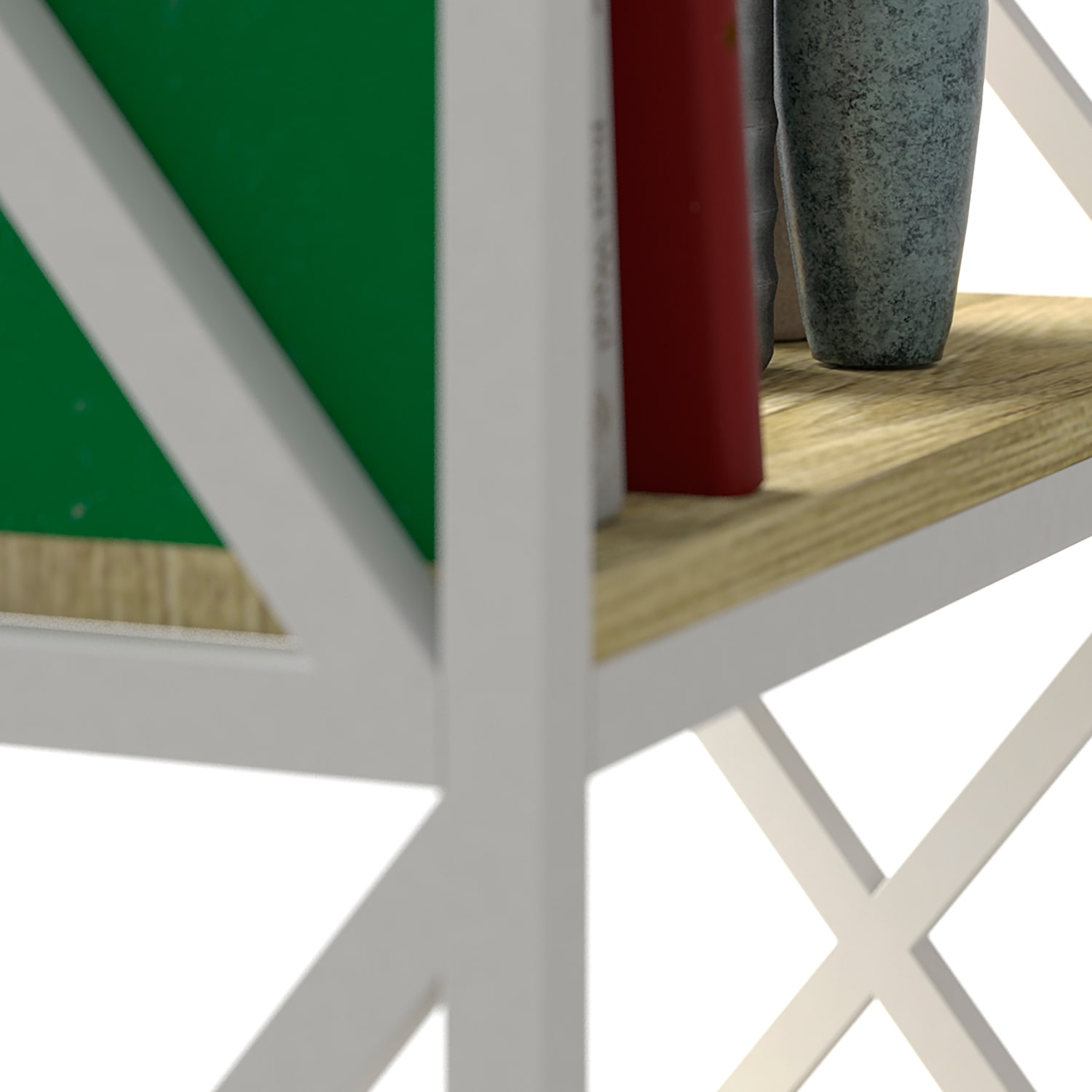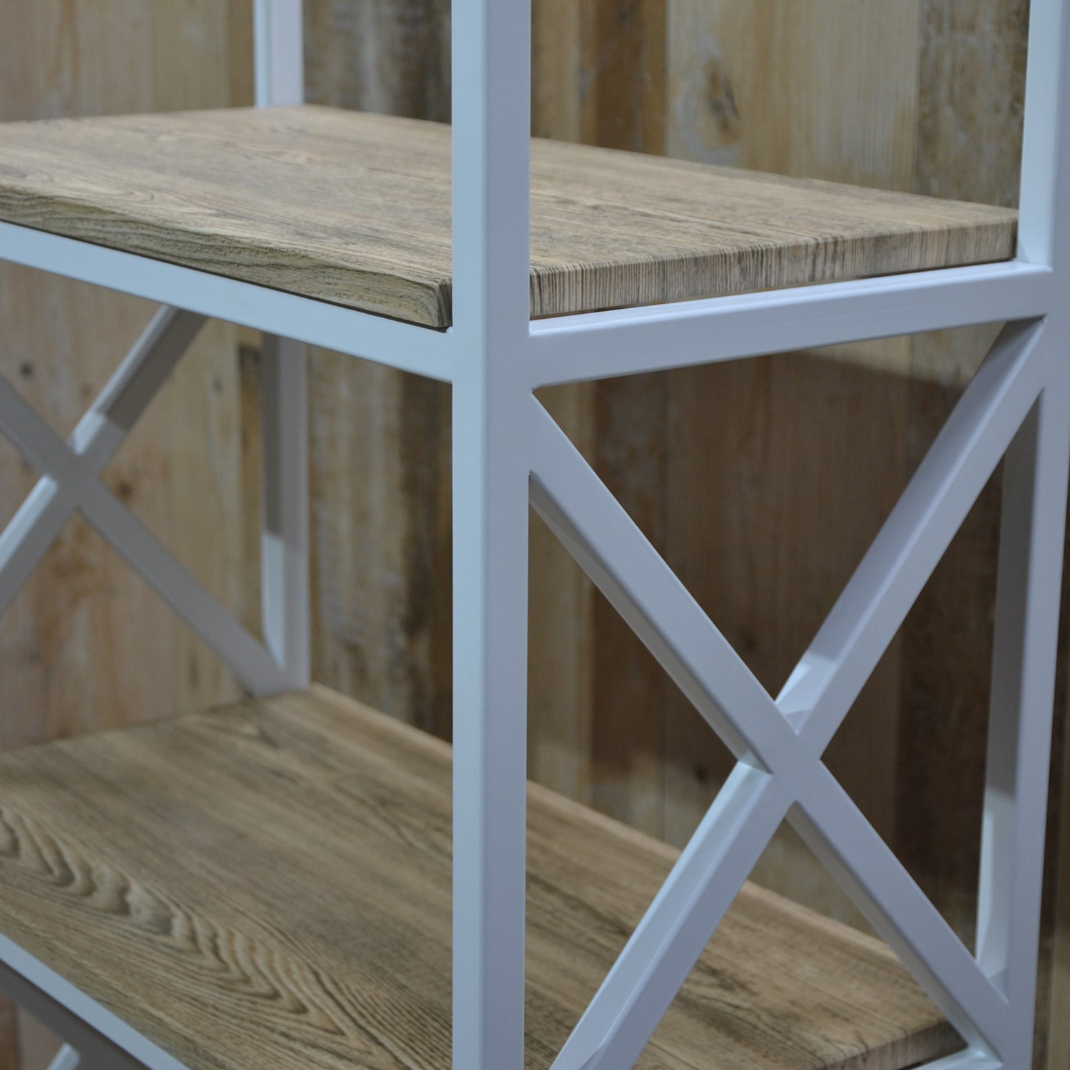 Металлический каркас из трубы 20х20 мм, порошковое покрытие белый муар, МДФ 16 мм в пленке ПВХ светлого цвета.