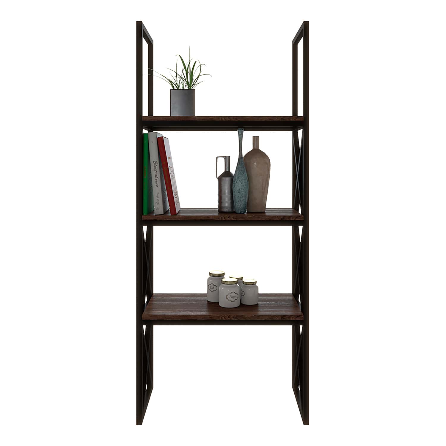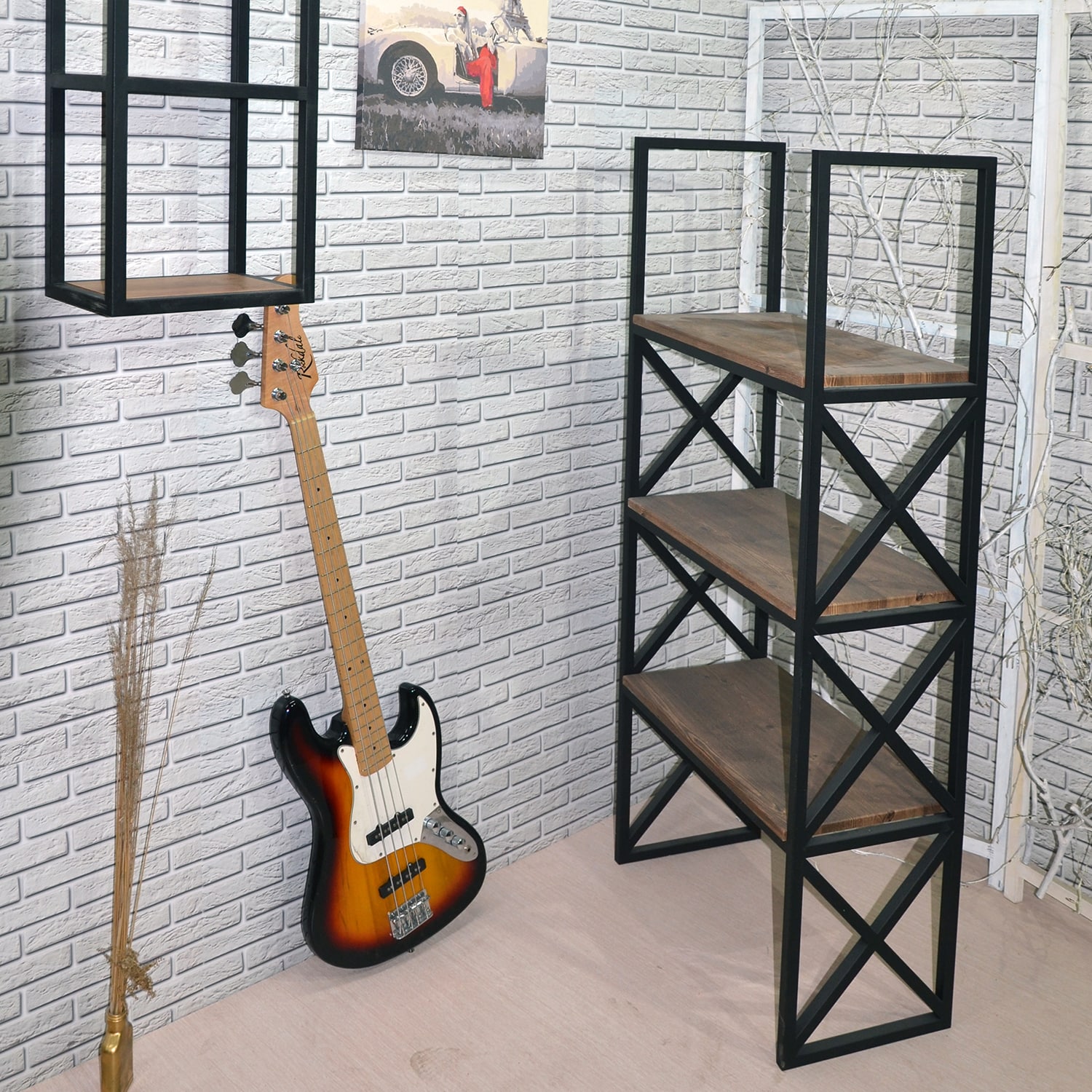 Металлический каркас из трубы 20х20 мм, порошковое покрытие черный муар, МДФ 16 мм в пленке ПВХ темного цвета.