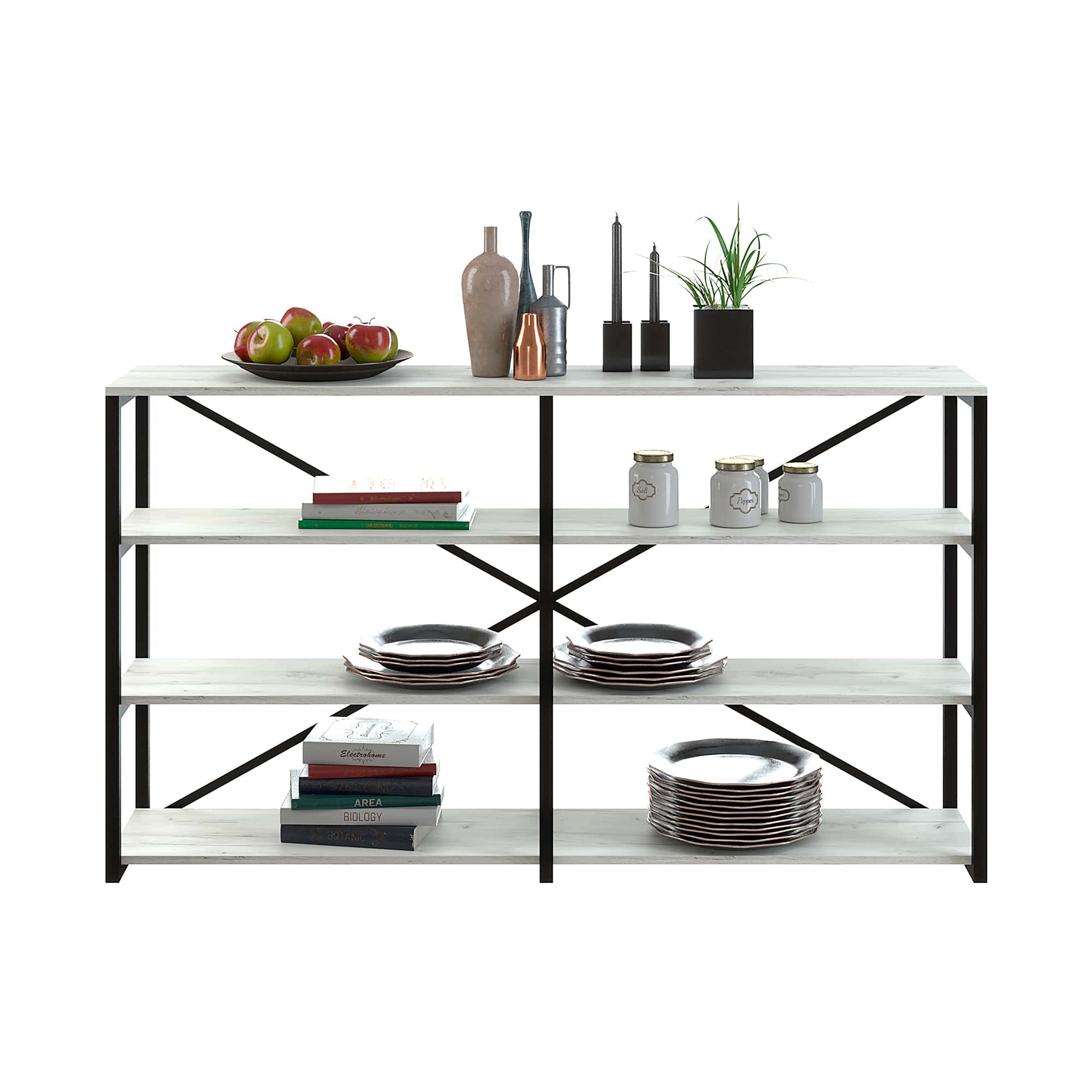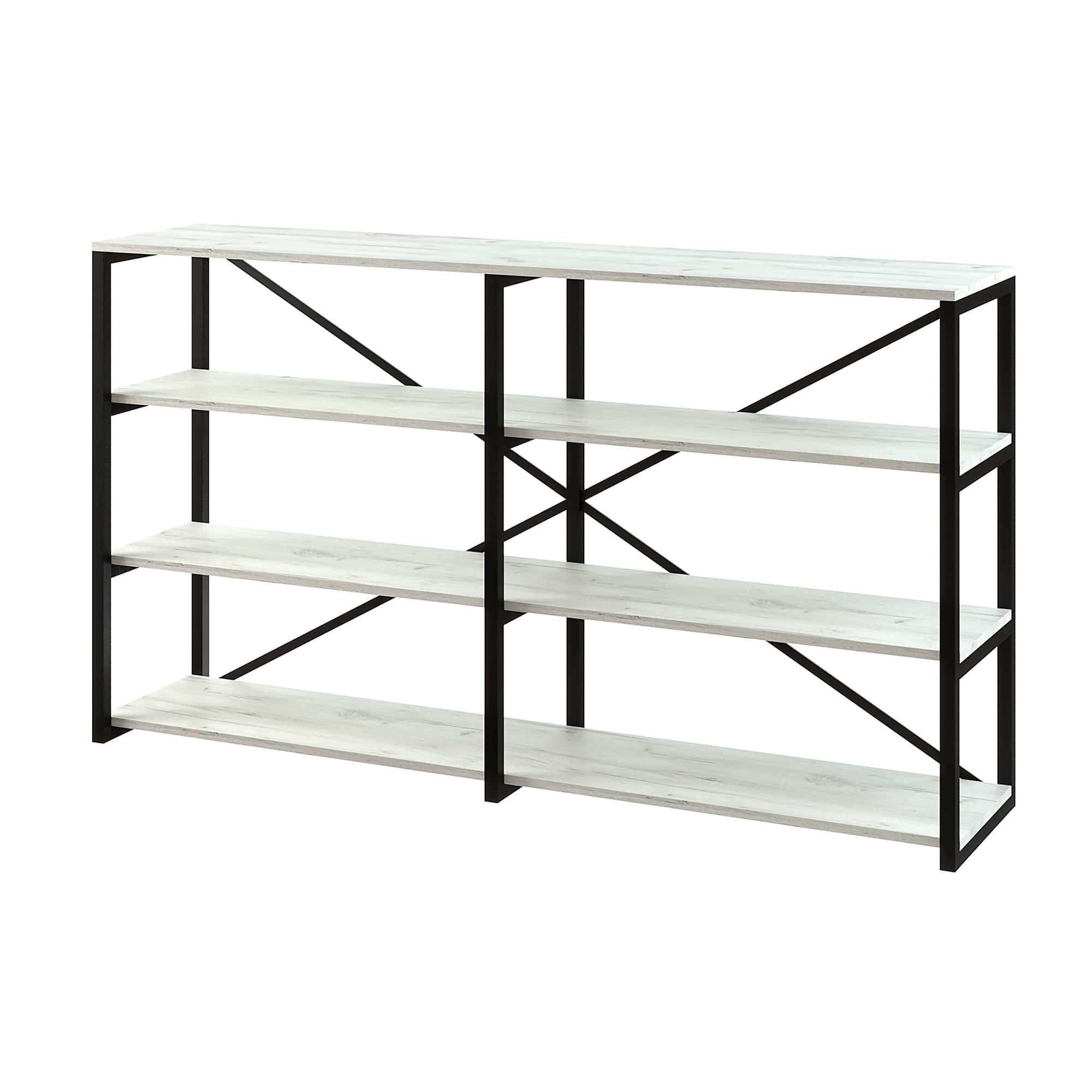 Каркас из трубы 25х25 мм, разборный, порошковое покрытие черный муар, ЛДСП 16 мм, цвет дуб белый, кромка 2мм.