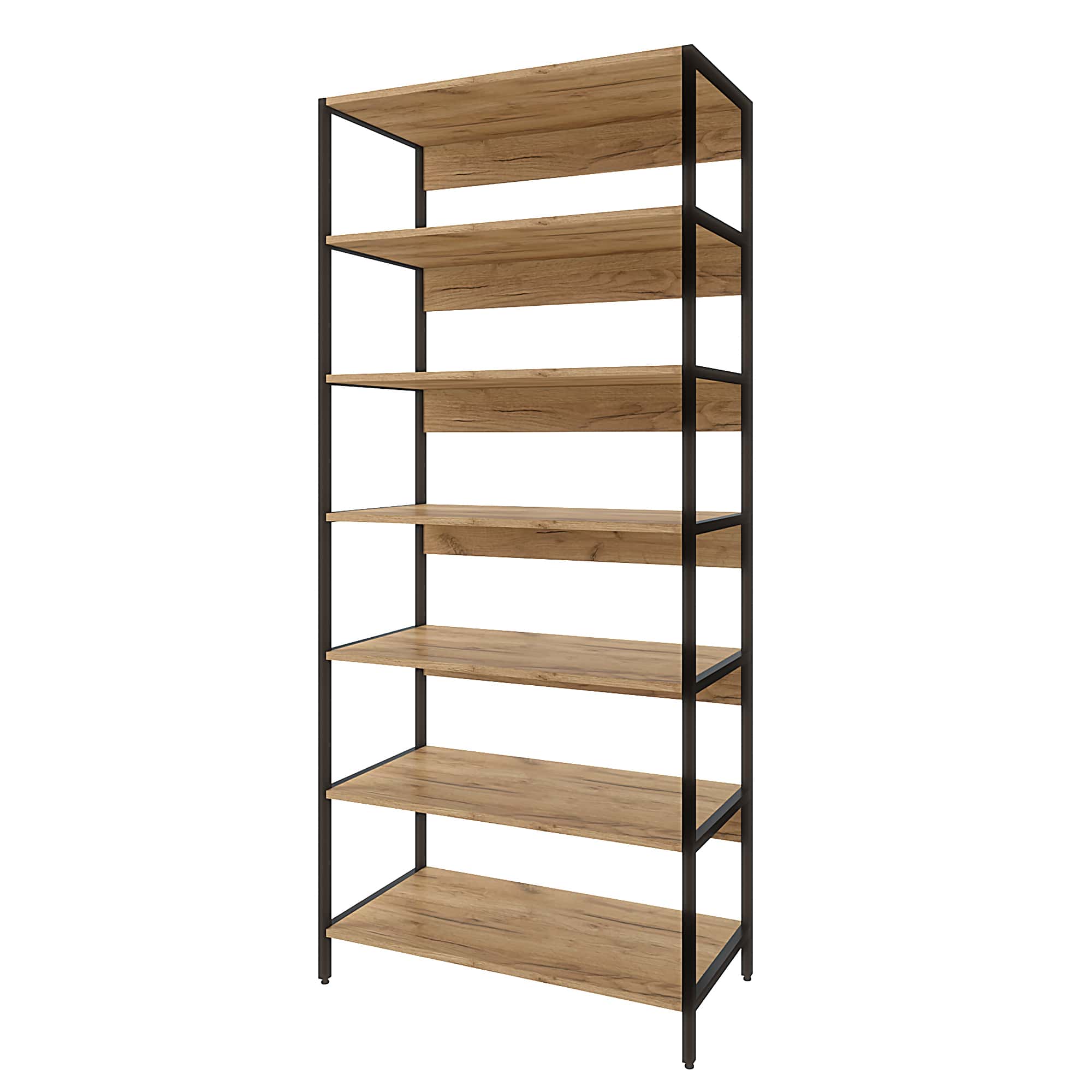 Каркас из трубы 20х20 мм, порошковое покрытие черный муар, ЛДСП 16 мм цвет дуб табачный, кромка 2мм.