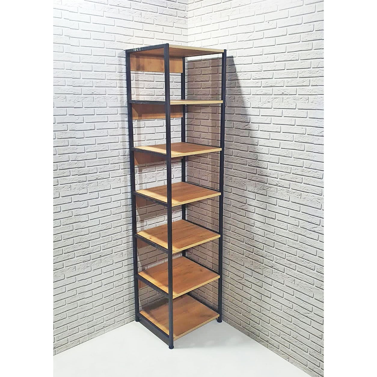 Каркас из трубы 20х20 мм, порошковое покрытие черный муар, ЛДСП 16 мм цвет дуб табачный, кромка 2мм.