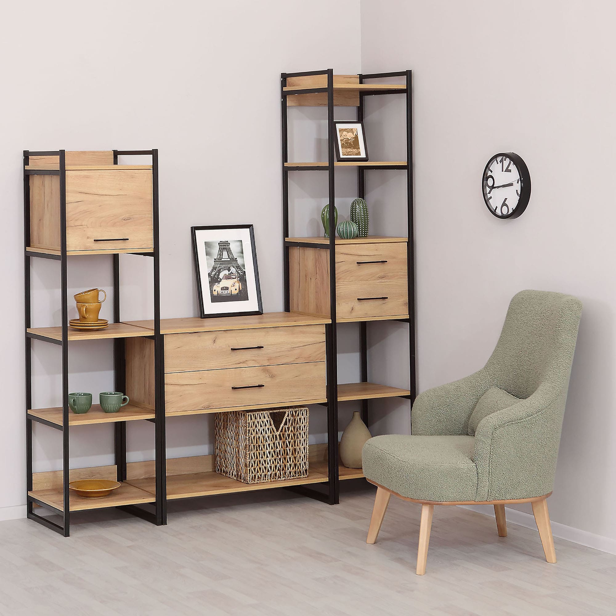 Стеллаж металлический №2 «Дуб Крафт золотой» — это стильный и функциональный элемент интерьера, который станет отличным дополнением к любому помещению. Он изготовлен из высококачественной стали с порошковым покрытием, которое обеспечивает долговечность и устойчивость к коррозии. Благодаря своей прочности и надёжности, этот стеллаж идеально подойдёт для хранения книг, сувениров, фотографий и других предметов.