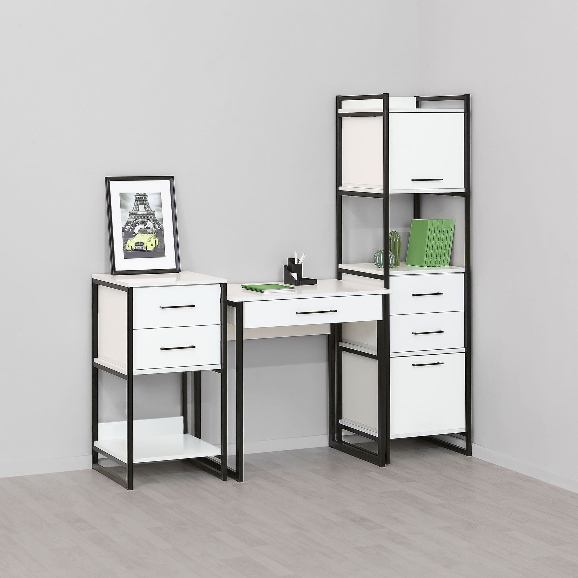 Металлический стеллаж прекрасно дополнять модули с ящиками (приобретаются отдельно!).