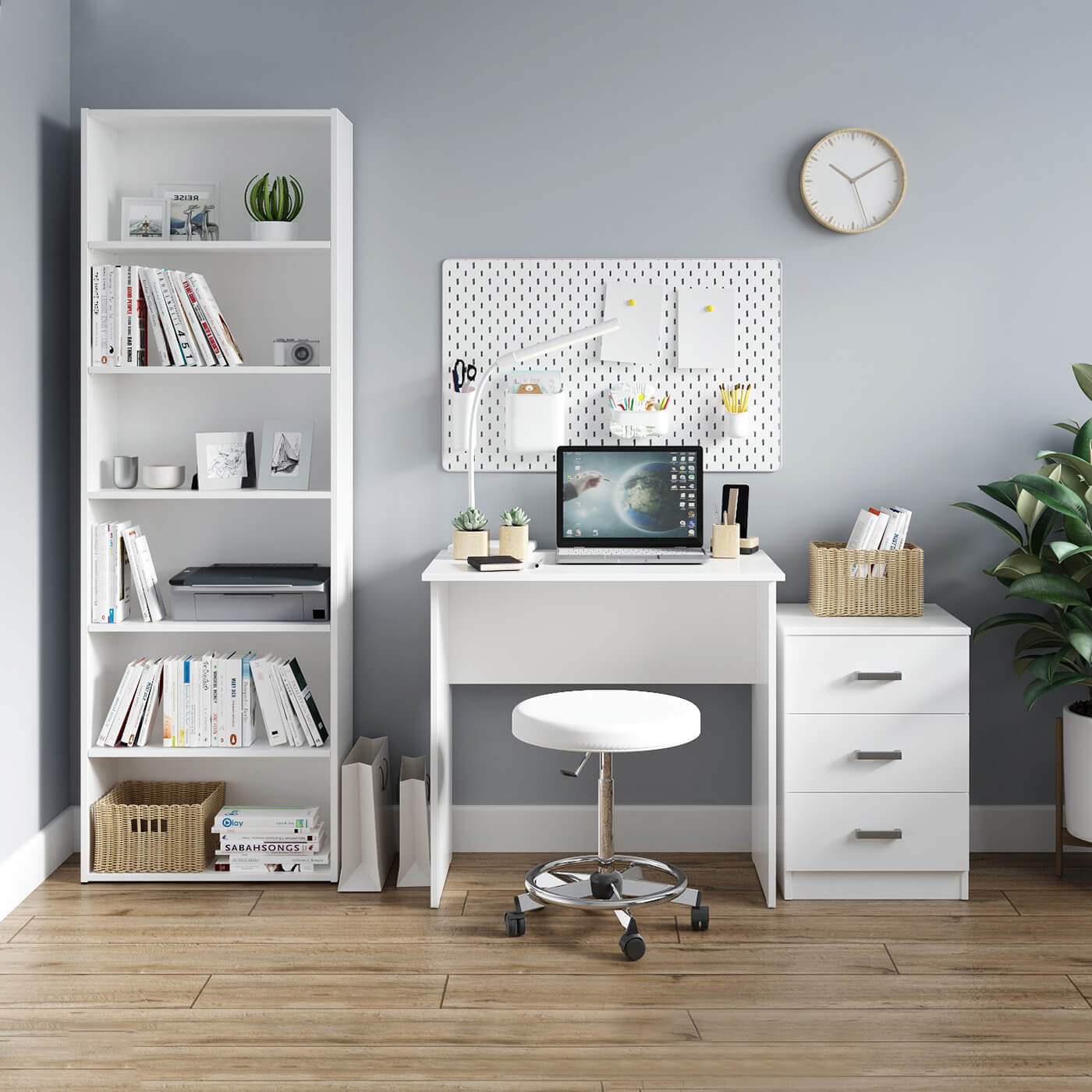 Стеллаж выполнен в белом цвете , который прекрасно впишется в интерьер гостиной, детской комнаты или станет отличным решением для зонирования пространства. Открытая конструкция стеллажа позволяют максимально использовать пространство и обеспечивают легкий доступ к вещам.