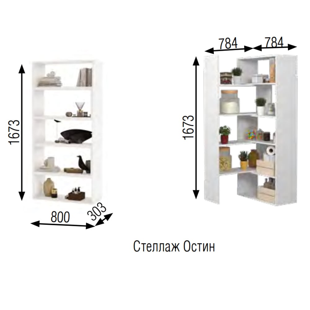 Удобная раздвижная конструкция стеллажа Остин позволяет максимально эффективно и рационально использовать пространство даже самых небольших помещений и комнат.