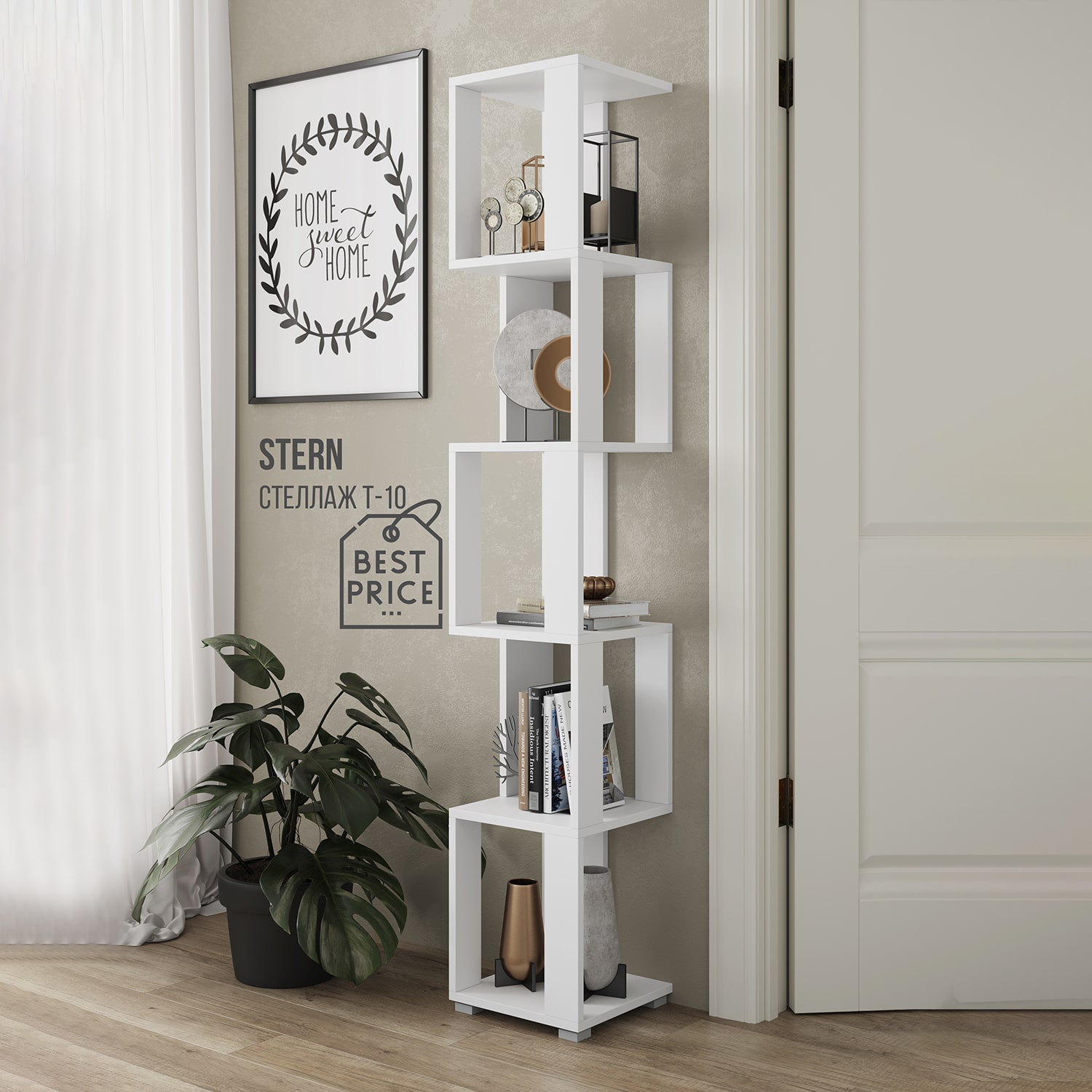 Стеллаж НК-мебель STERN Т-10 подойдет для любого стиля интерьера: от лофта и минимализма до классического и скандинавского.