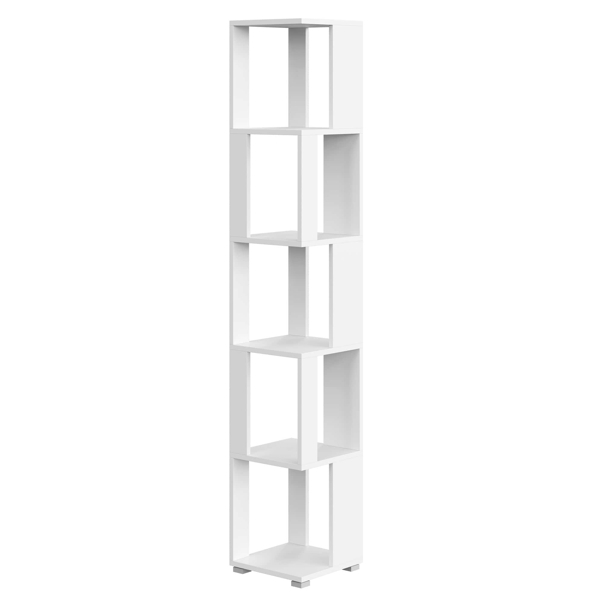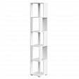 Стеллаж имеет 5 полок, что позволяет разместить на нем различные предметы: от книг и игрушек до растений. Открытая конструкция и угловая форма делают его удобным для зонирования пространства и создания уюта в помещении.