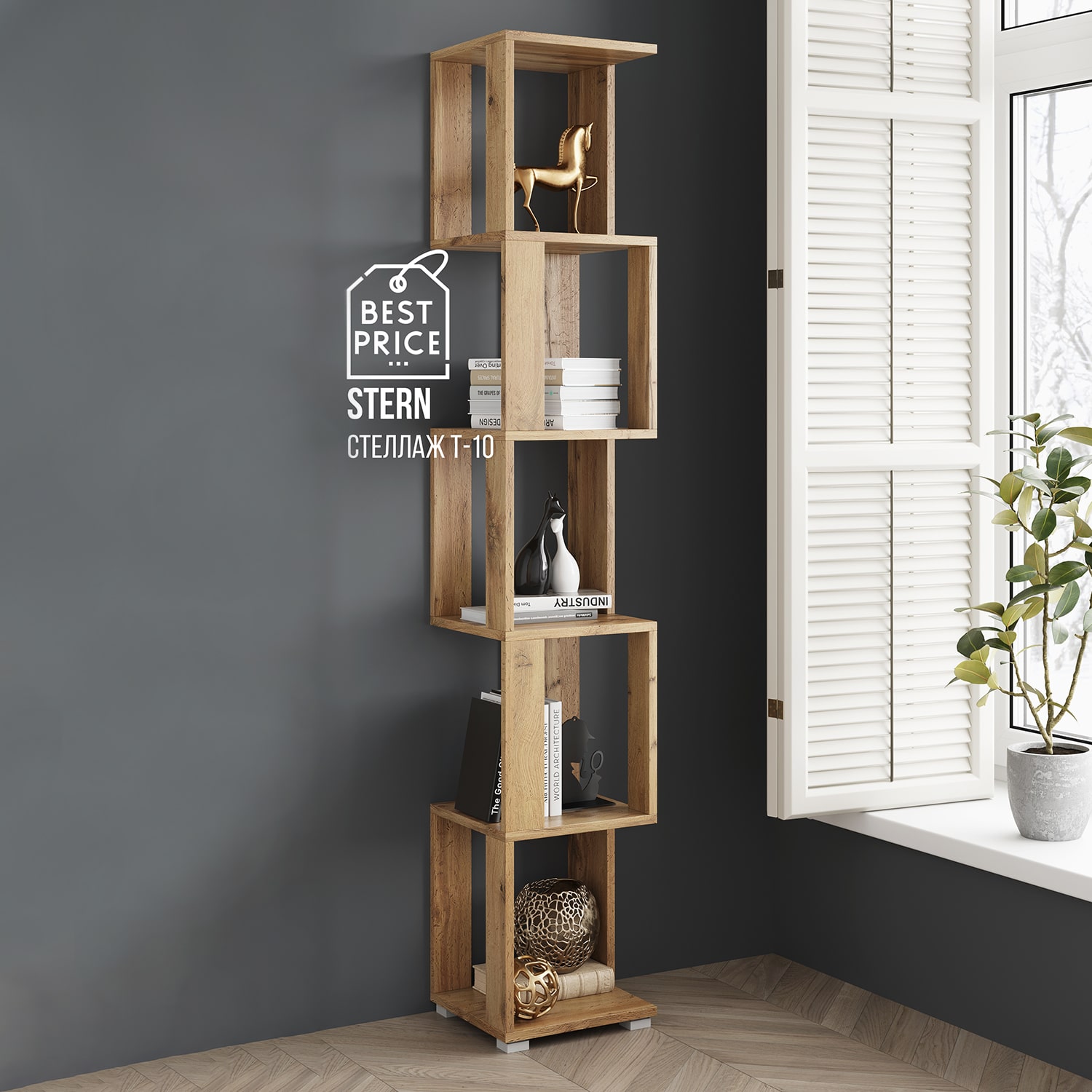 Стеллаж НК-мебель STERN Т-10 подойдет для любого стиля интерьера: от лофта и минимализма до классического и скандинавского.