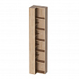 Конструкция стеллажа включает в себя две проходные боковины, между которыми расположены пять больших стационарных полок и четыре малых, находящихся по обе стороны от боковин. Для обеспечения жесткости конструкции задний щит — большой и малый — выполнен из ЛДСП. Детали дна и крышки представляют собой цельный фрезерованный щит с криволинейным вырезом. Изделие имеет зеркальную сборку.