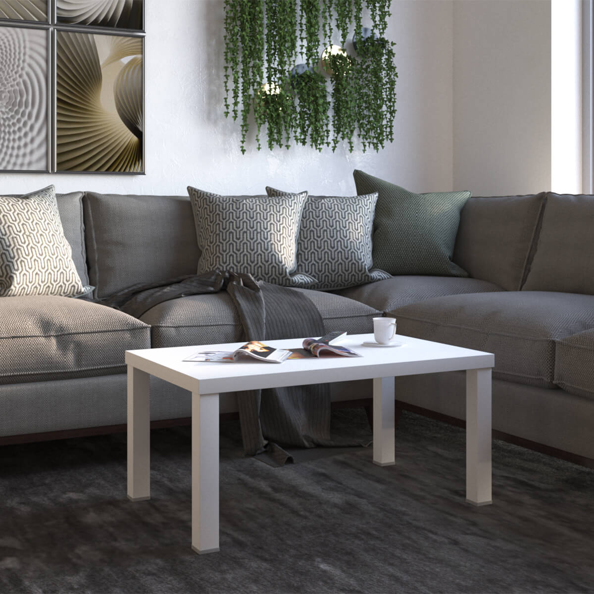 Столик выполнен в минималистическом стиле, что позволяет ему легко вписываться в любой интерьер.