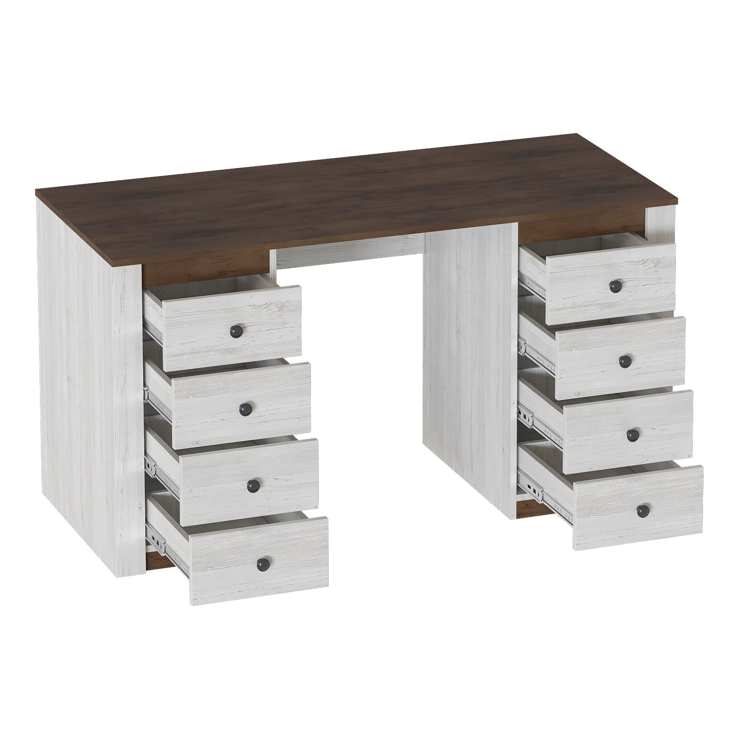 Стол изготовлен из качественных, безопасных материалов, что гарантирует его надежность и долговечность. В столе установлено восемь выдвижных ящиков, которые идеально подходят для хранения документов и канцелярских принадлежностей. Также на столе есть место для монитора компьютера и клавиатуры.
