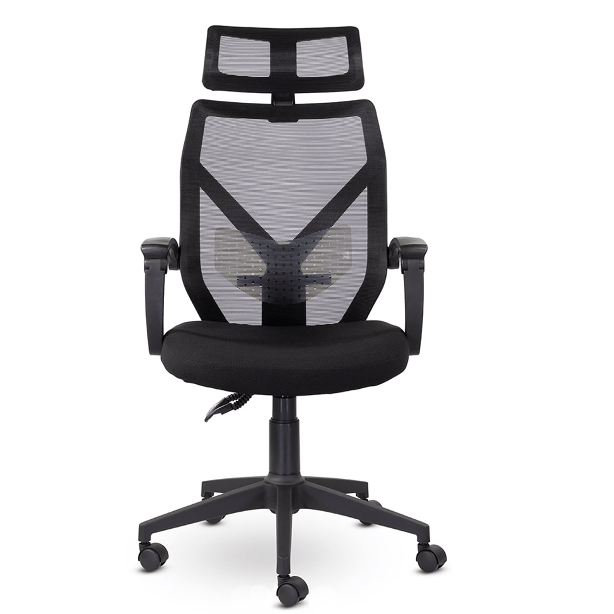 Кресло руководителя с уникальной системой трансформации подлокотников при активации механизма качания 1/3. Дополнительный комфорт в зоне поясницы сделан за счет регулируемой по высоте и глубине блока из прозрачного пластика. Изменение наклона и высоты подголовника способствует удобному расположению в кресле.