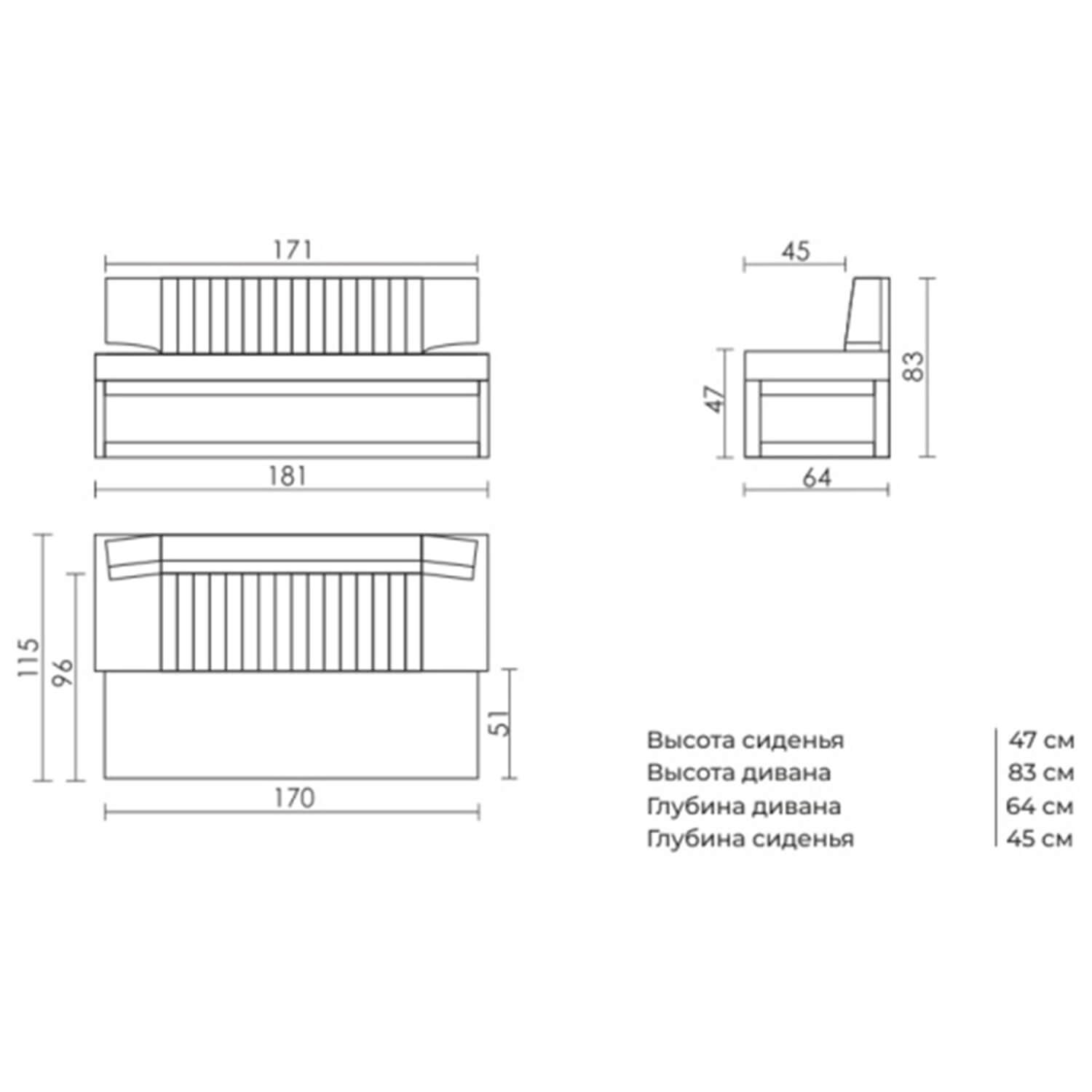 Высота сиденья: 470 мм