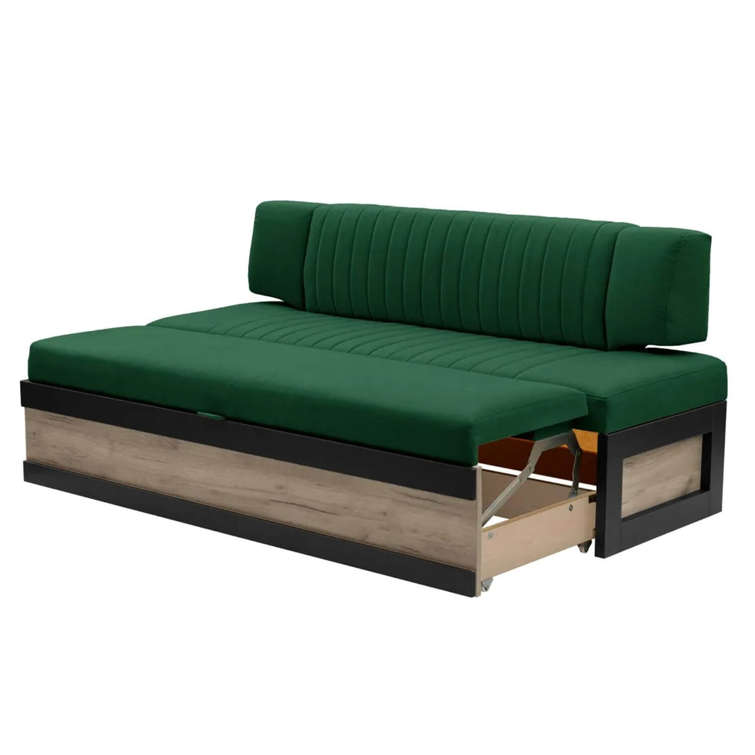 Кухонный диван "Орион" - это идеальное решение для вашего дома, кухни или гостиной, сочетая в себе стиль, комфорт и функциональность. Обивка из износостойкого велюра в ярком зеленом оттенке создает атмосферу уюта и свежести, а сочетание с ЛДСП в цвете Дуб крафт серый придает дивану элегантный и современный вид.