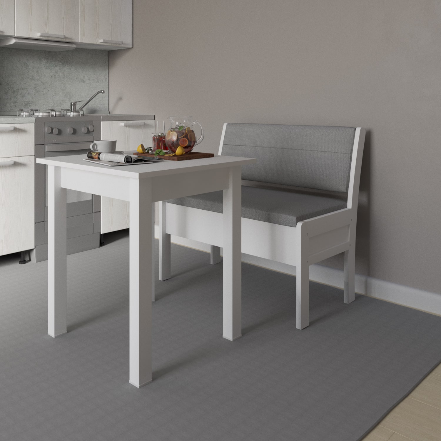 Кухонный диван Этюд облегченный прямой с ящиком 1390 эмаль белая