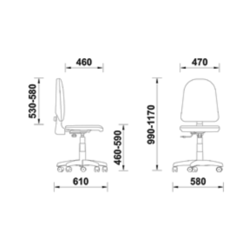 Каркас кресла изготовлен из металла и пластика, что гарантирует его прочность и надежность. Основание кресла выполнено в виде пятилучия из пластика диаметром 630 мм, что обеспечивает устойчивость и стабильность.