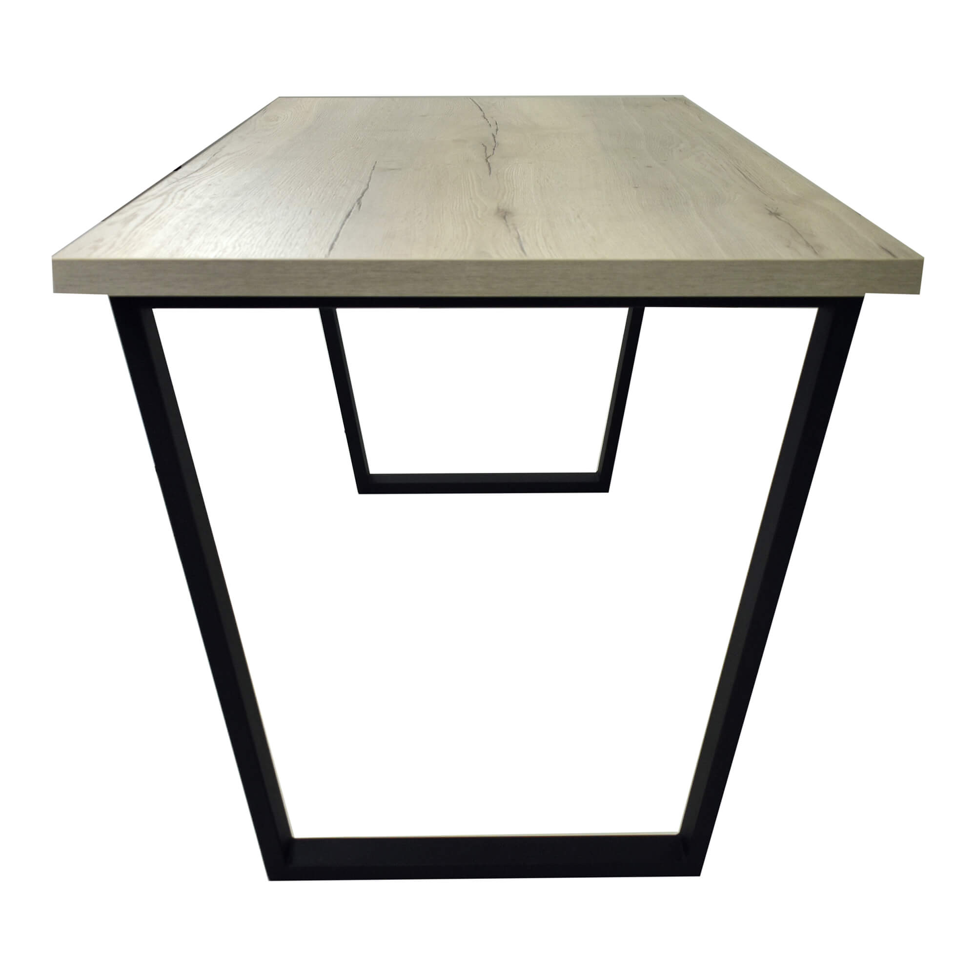 Трапециевидные опоры из трубы квадратного профиля придают столу актуальный силуэт, который идеально впишется в современый интерьер в стиле лофт. Поверхность столешницы – высококачественная ЛДСП Egger, 32 мм.