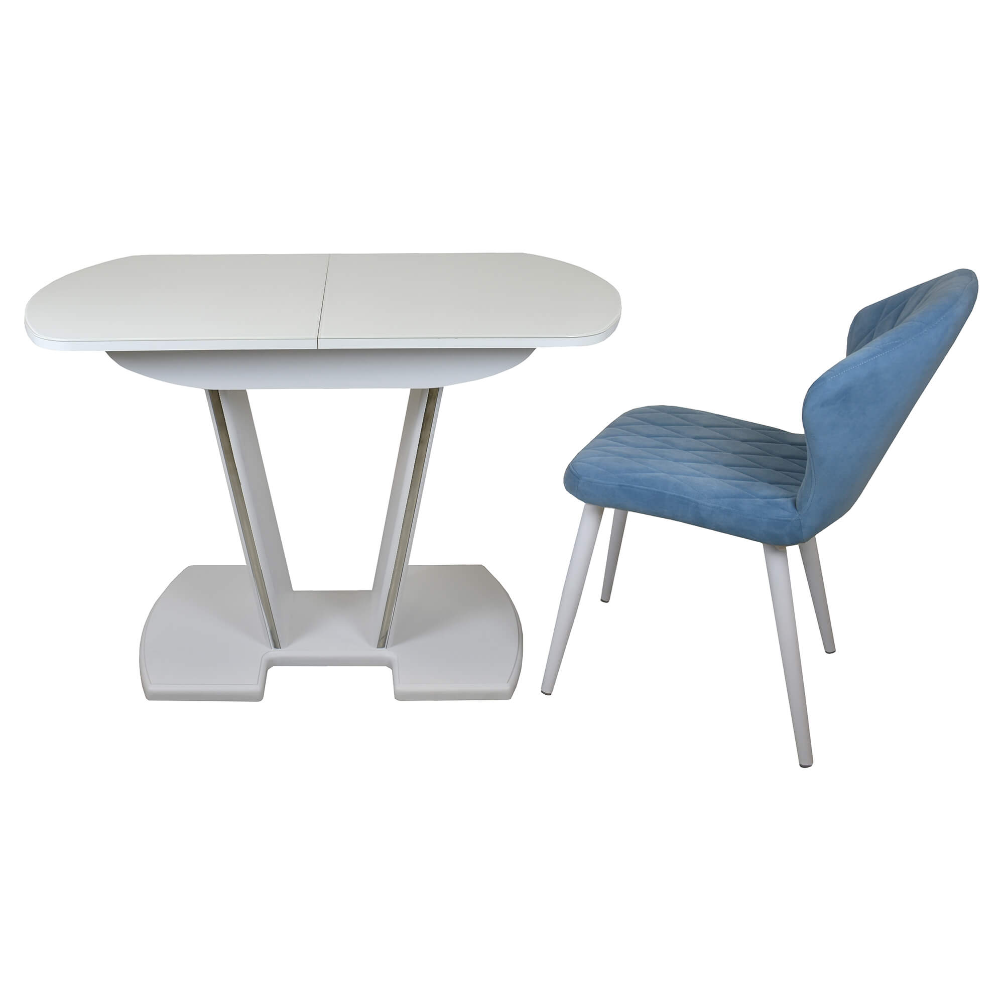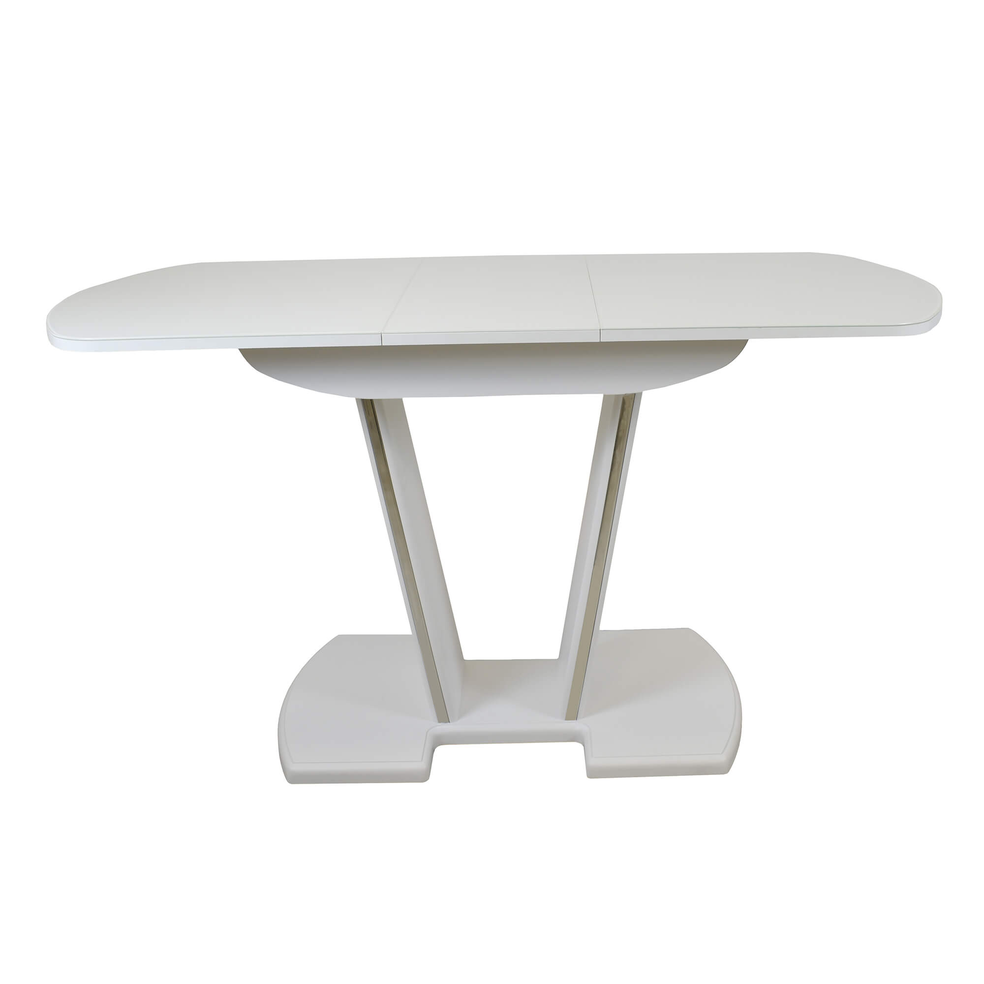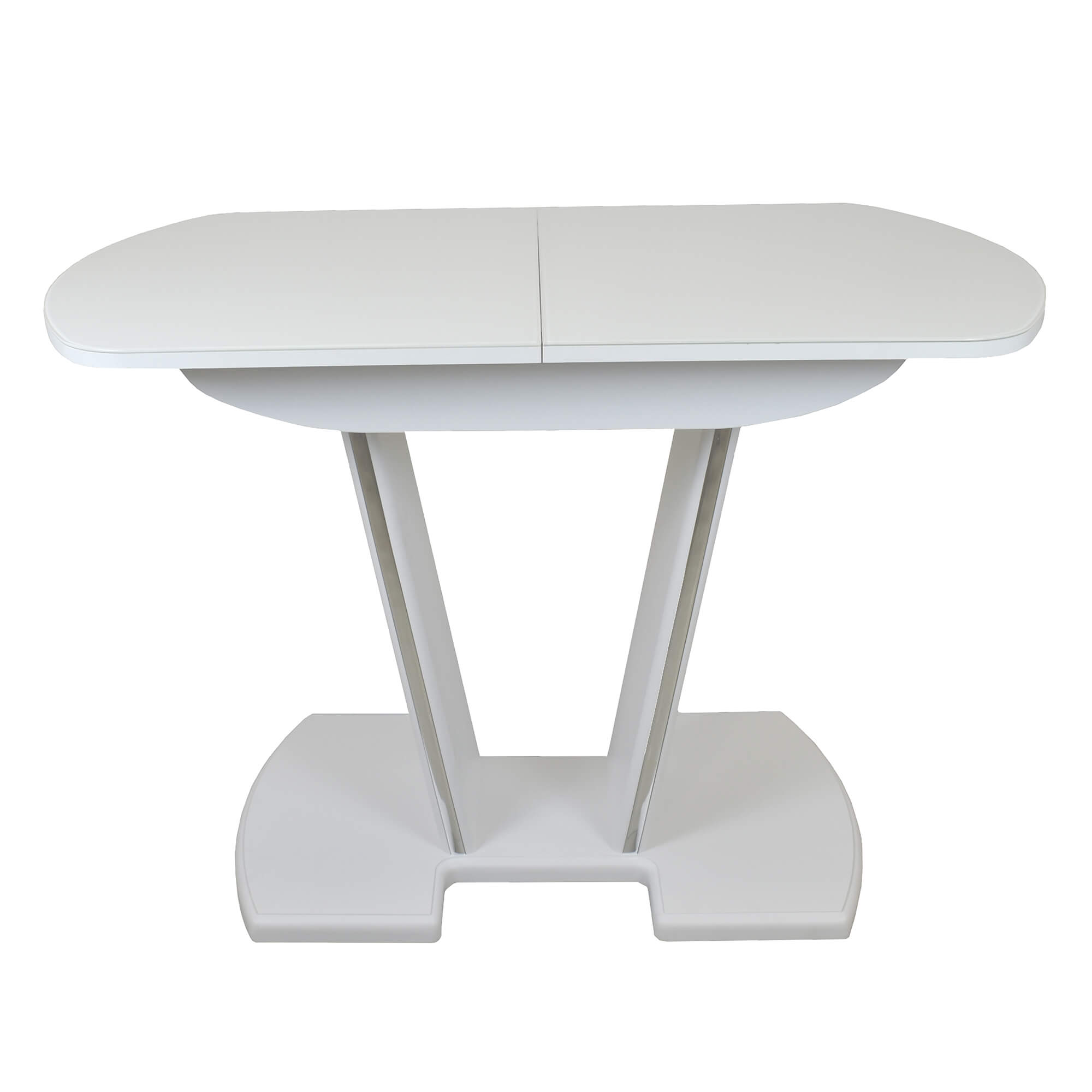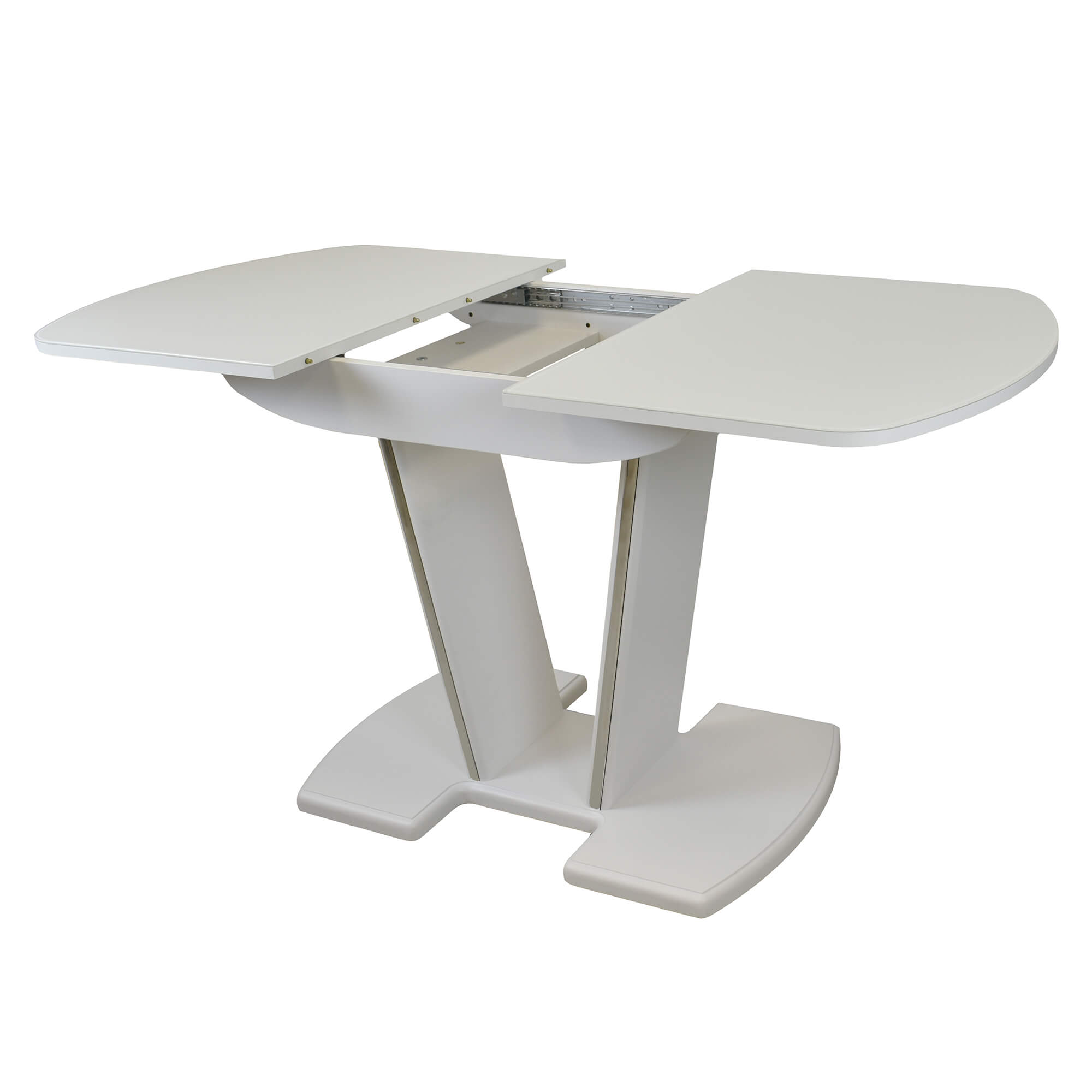 Раздвижной обеденный стол с инновационной V-образной опорой. Легко раскладывается, многофункционален, удобен. Выполнен из ЛДСП 16 мм, столешница покрыта высококачественным закаленным стеклом 4 мм с безопасной фаской Safe face. Стекло окрашено немецкими керамическими красками Ferro.
