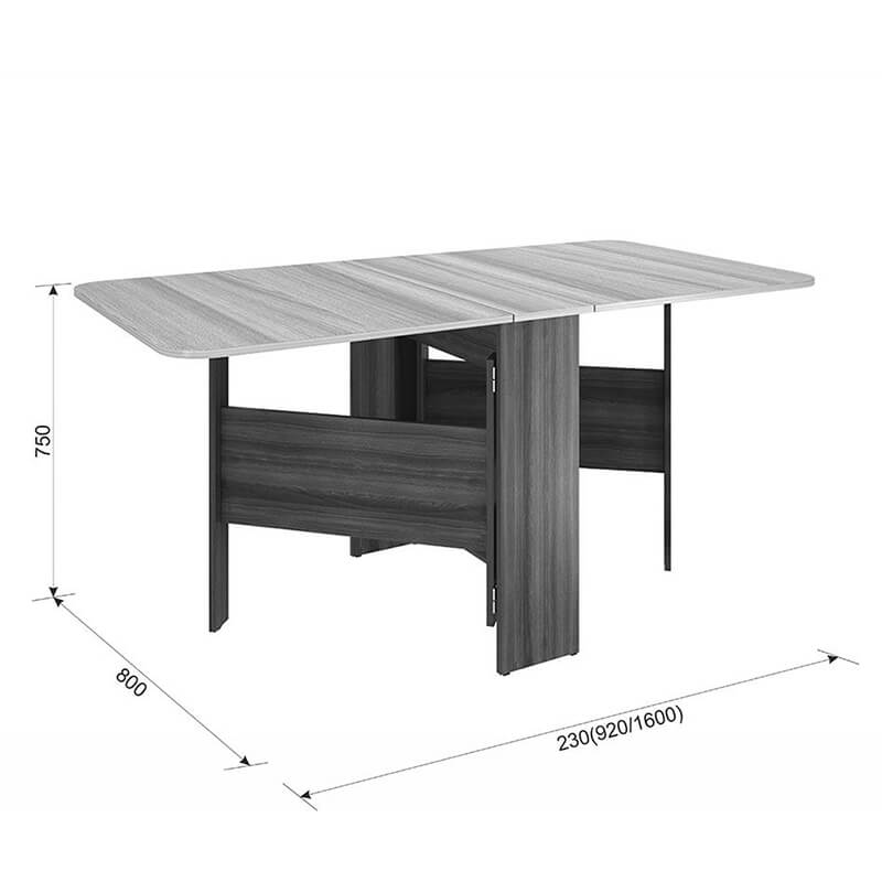 Разложение стола осуществляется путем поднятия одной из створок, выдвижения опоры и последующего опускания створки до полного соединения. Выберите Стол-книжка раскладной Мечта 2 и наслаждайтесь комфортом и качеством!