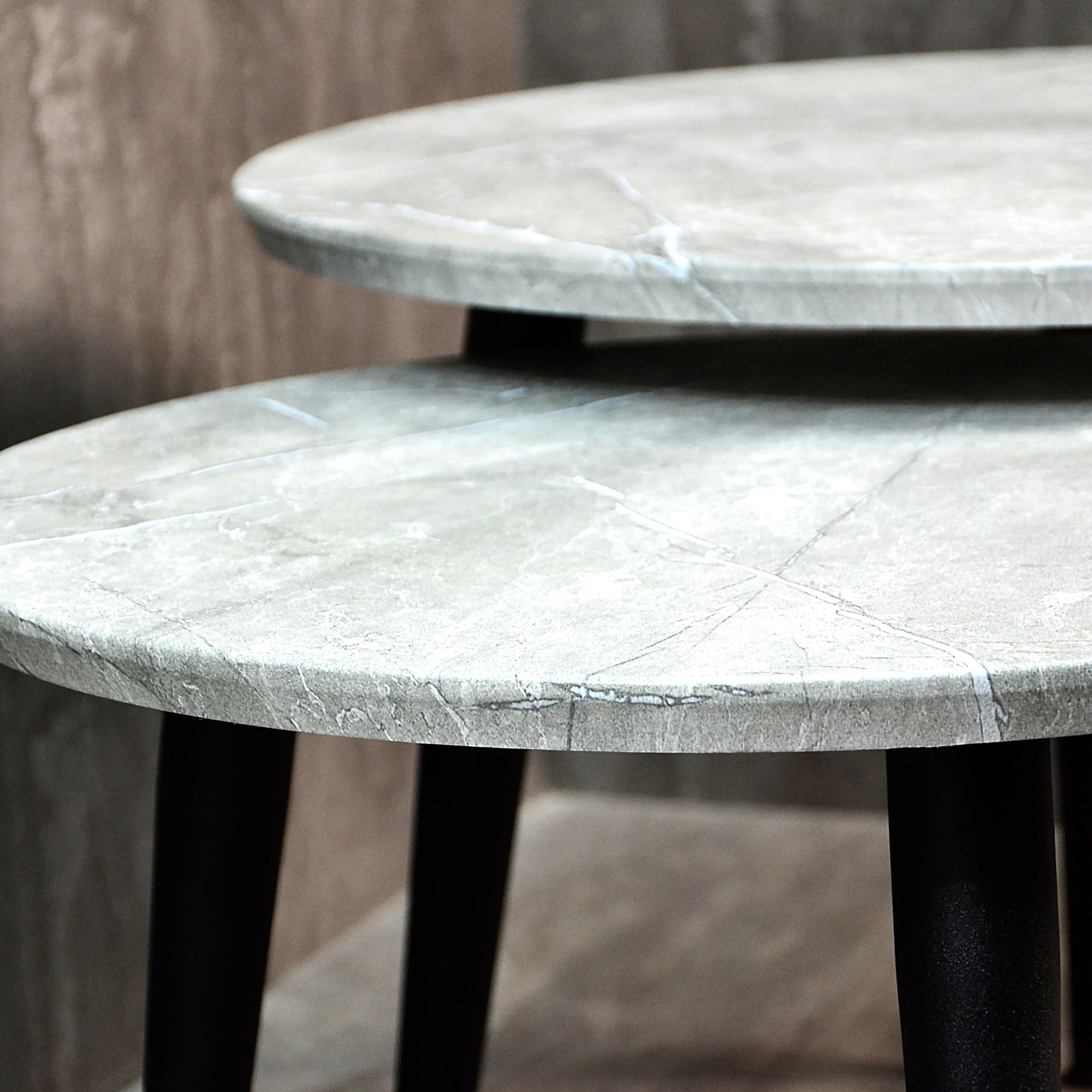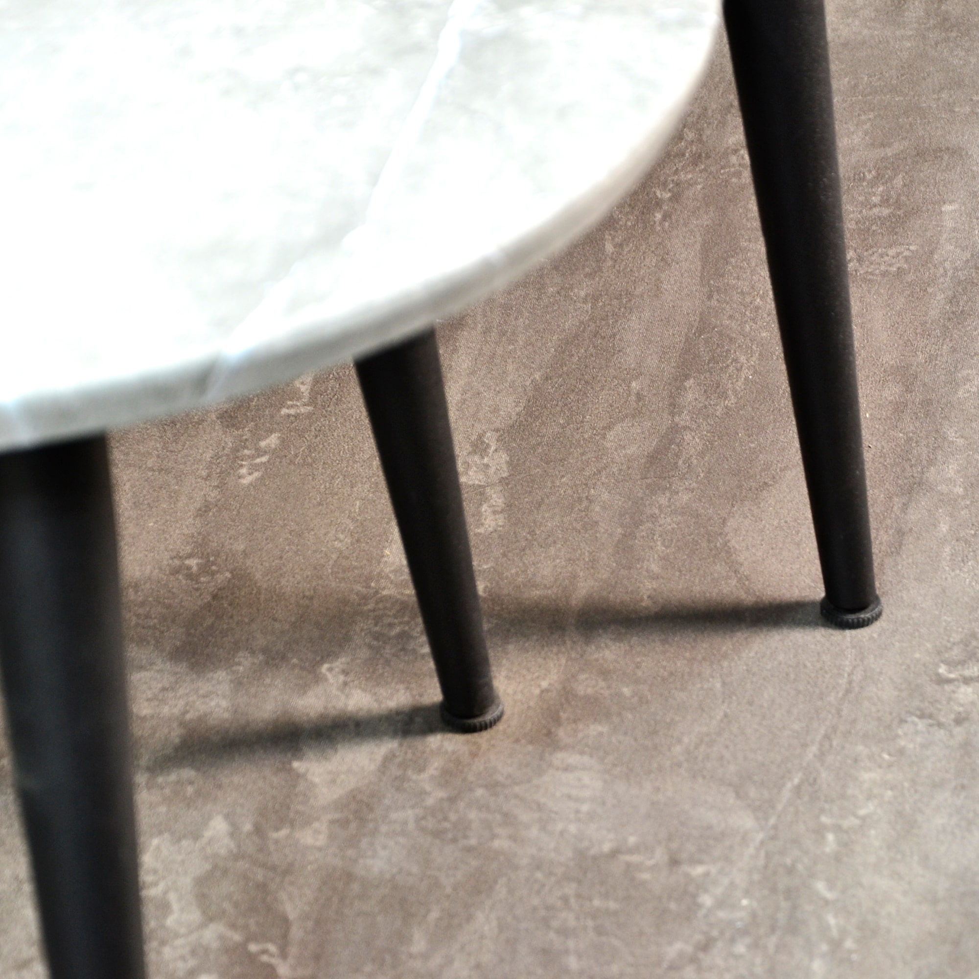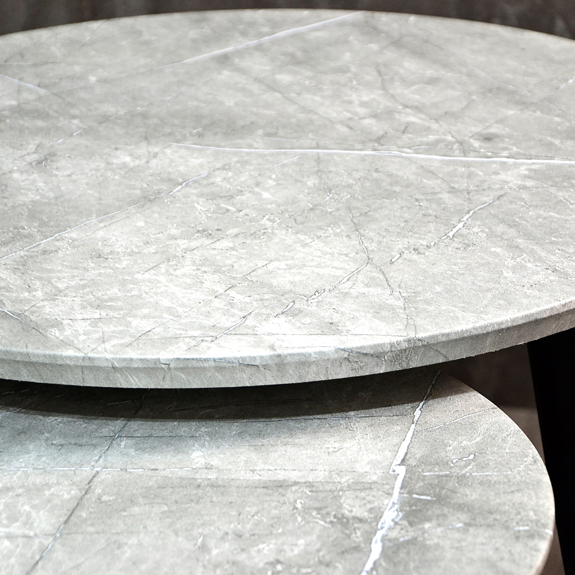 Диаметр большого 600, малого 500. Высота большого - 450 мм, высота малого - 400 мм. Опора конусная порошковое покрытие черный муар, МДФ 19мм в пленке ПВХ - Marbele Creek.