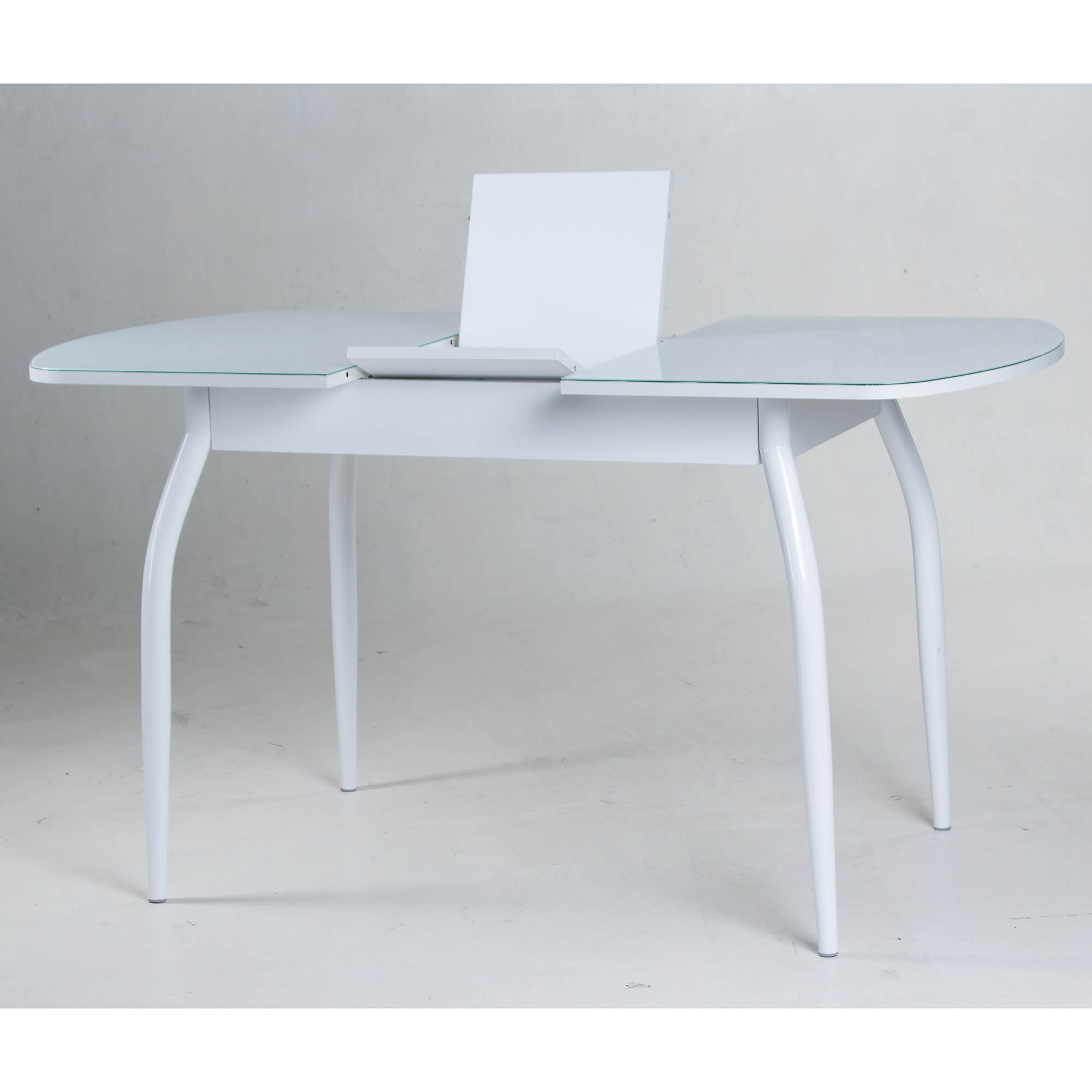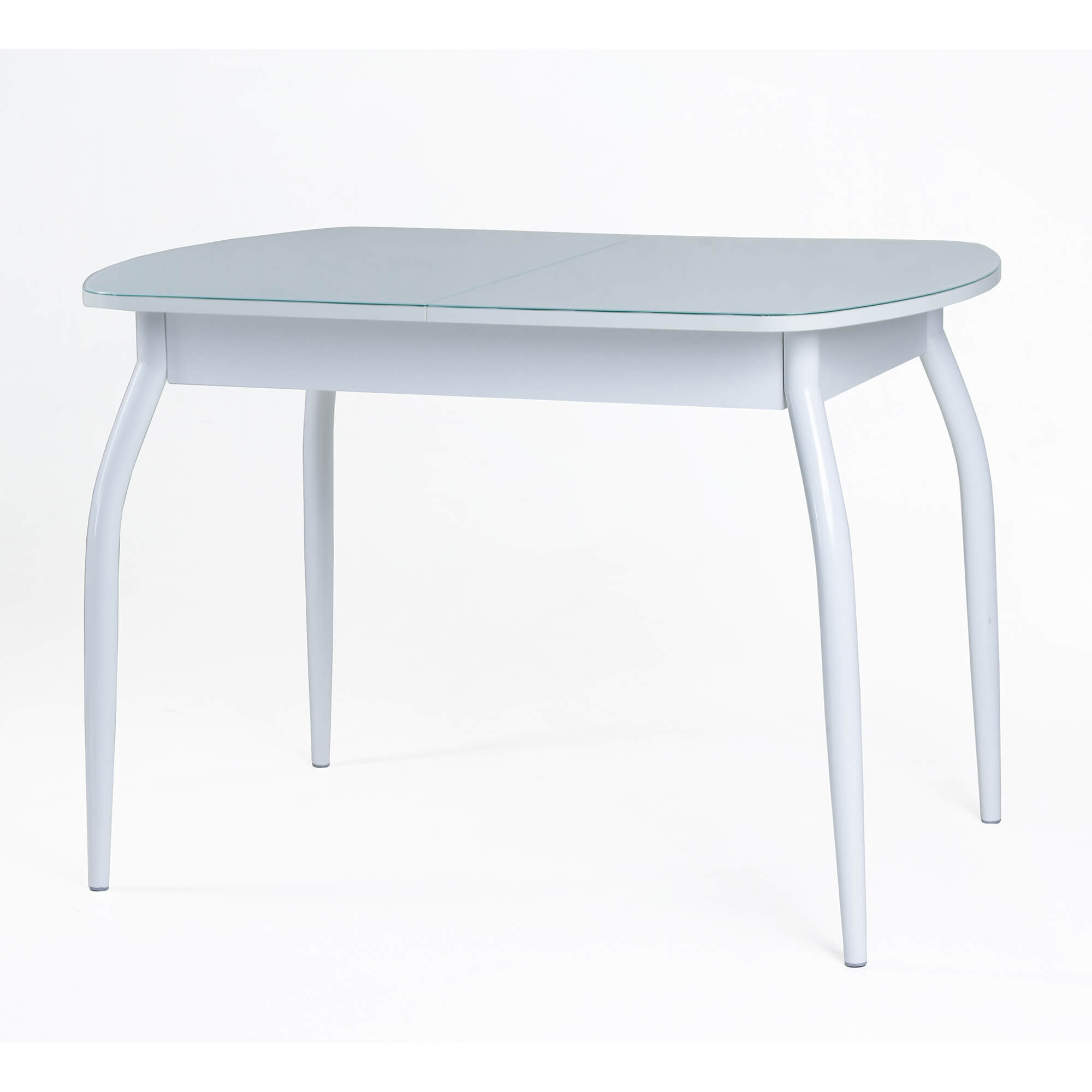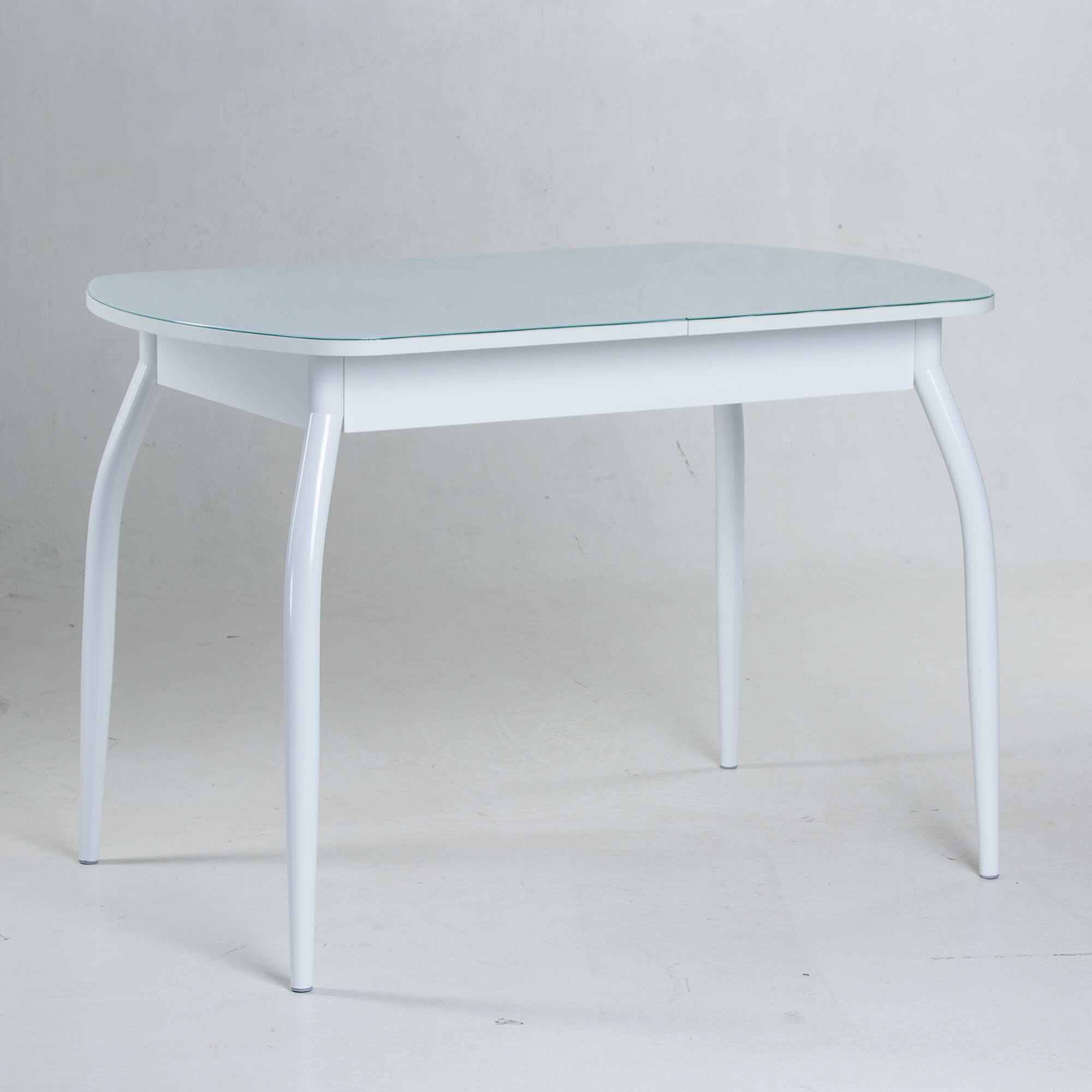 Стол раздвижной со столешницей с закругленными углами. Выполнен из ЛДСП 16 мм и прочного закаленного стекла толщиной 4 мм, окрашенного немецкими керамическими красками Ferro. Высококачественное стекло изготовлено со специальной безопасной фаской Safe face и декорировано кожзамом с фактурой крокодиловой кожи. Закругленные формы столешницы и ножек обеспечивают безопасность при эксплуатации.