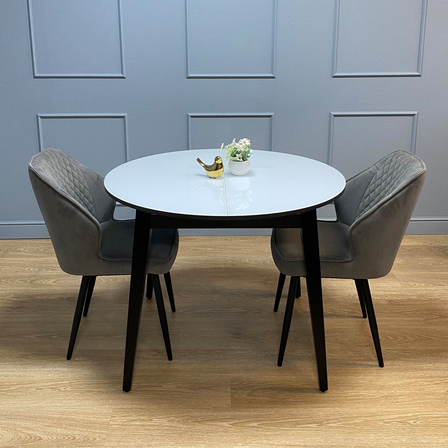 Компактный и очень функциональный стол, идеален для использования как на небольшой кухне, так и в качестве уютной обеденной зоны в гостиной. Столешница из стекла надежно защищает стол от влаги и горячего. Синхронный механизм раскладки позволяет легко раздвинуть стол одной рукой любому члену семьи. Вставка с материалом столешницы осталяет стол монолитным в разложенном состоянии. Стол максимально устойчив благодаря особому, усиленному креплению опор и регулировочным винтам.