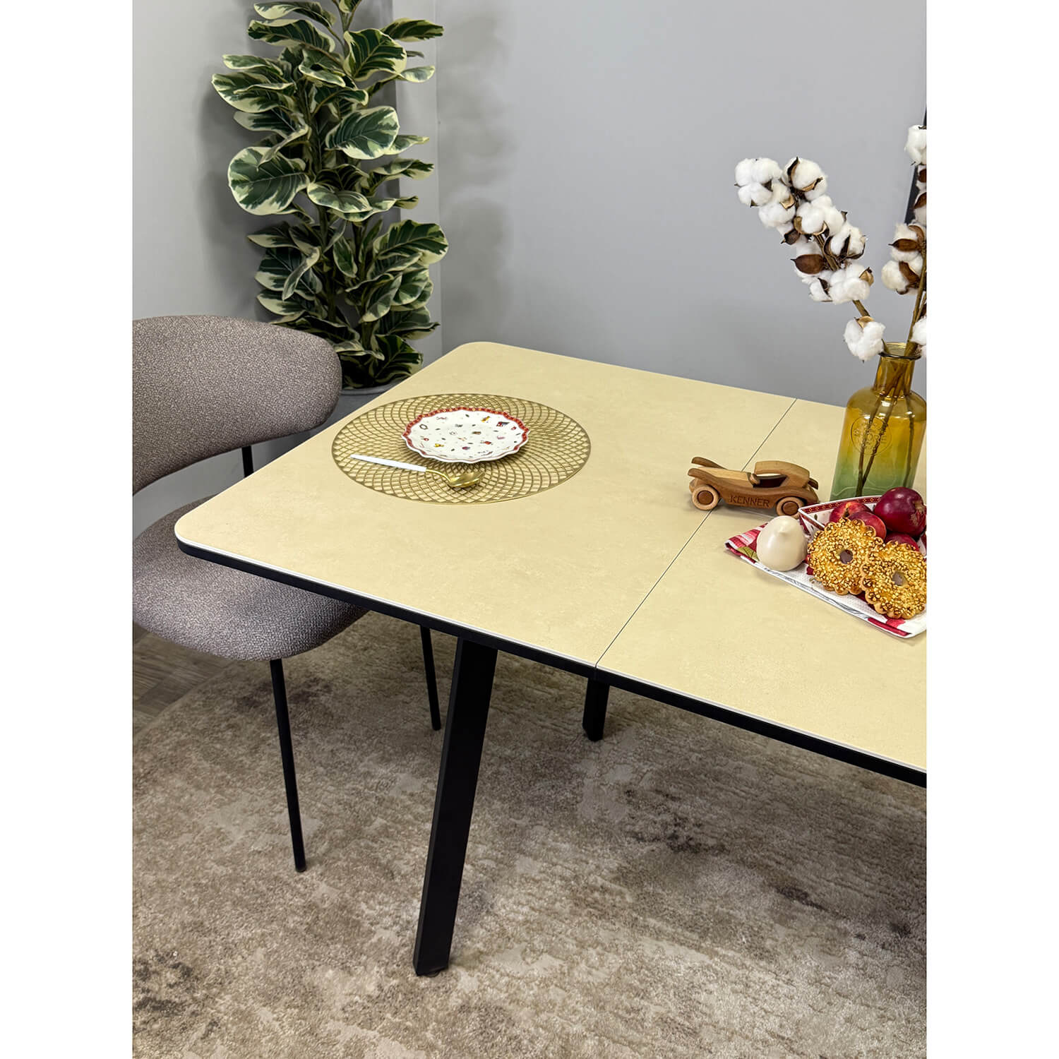 Стол обеденный Kenner AK1200 черный/керамика OKARA LIGHT YELLOW