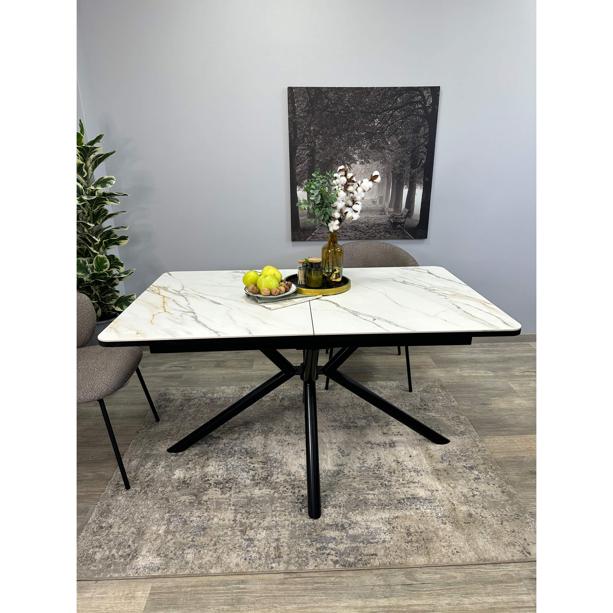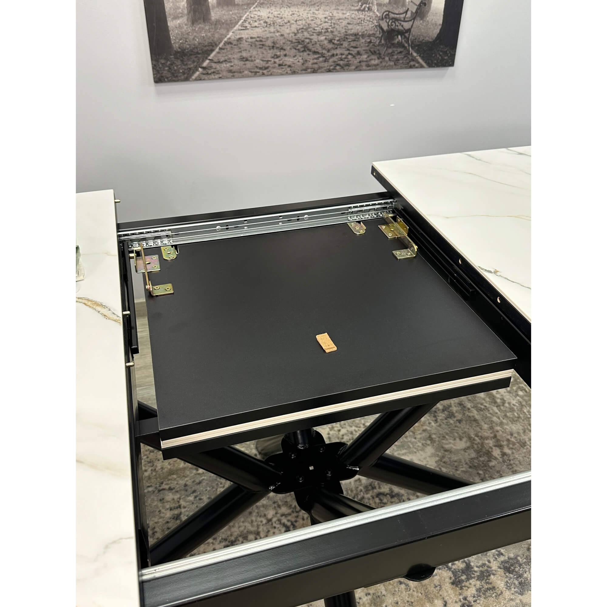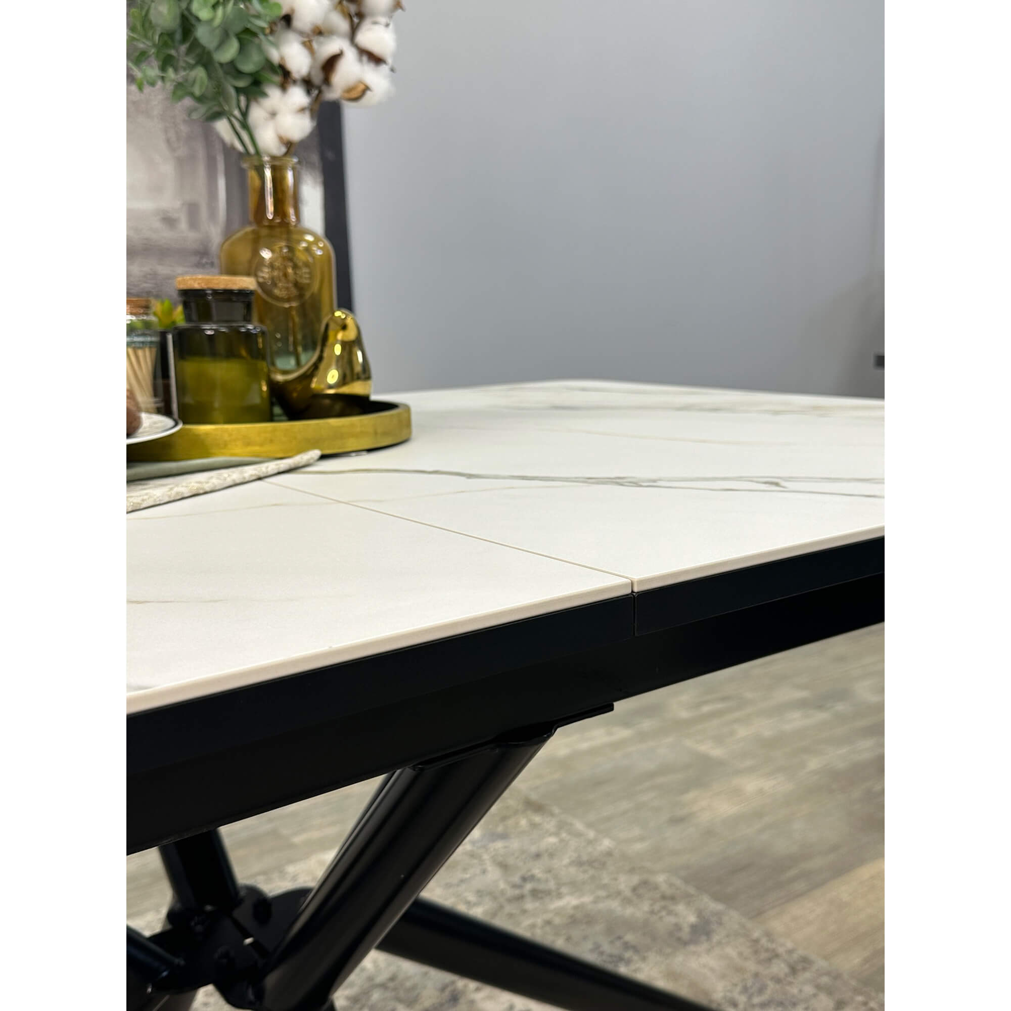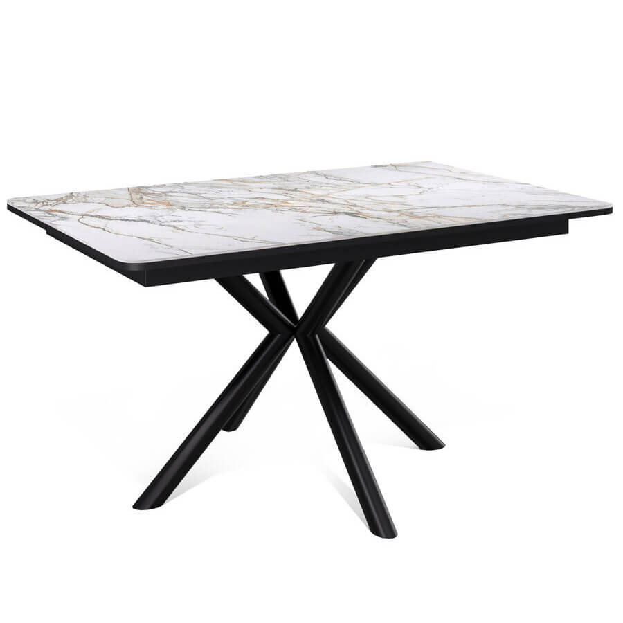 Стол обеденный Kenner DF1550 черный/керамика мрамор белый глянец