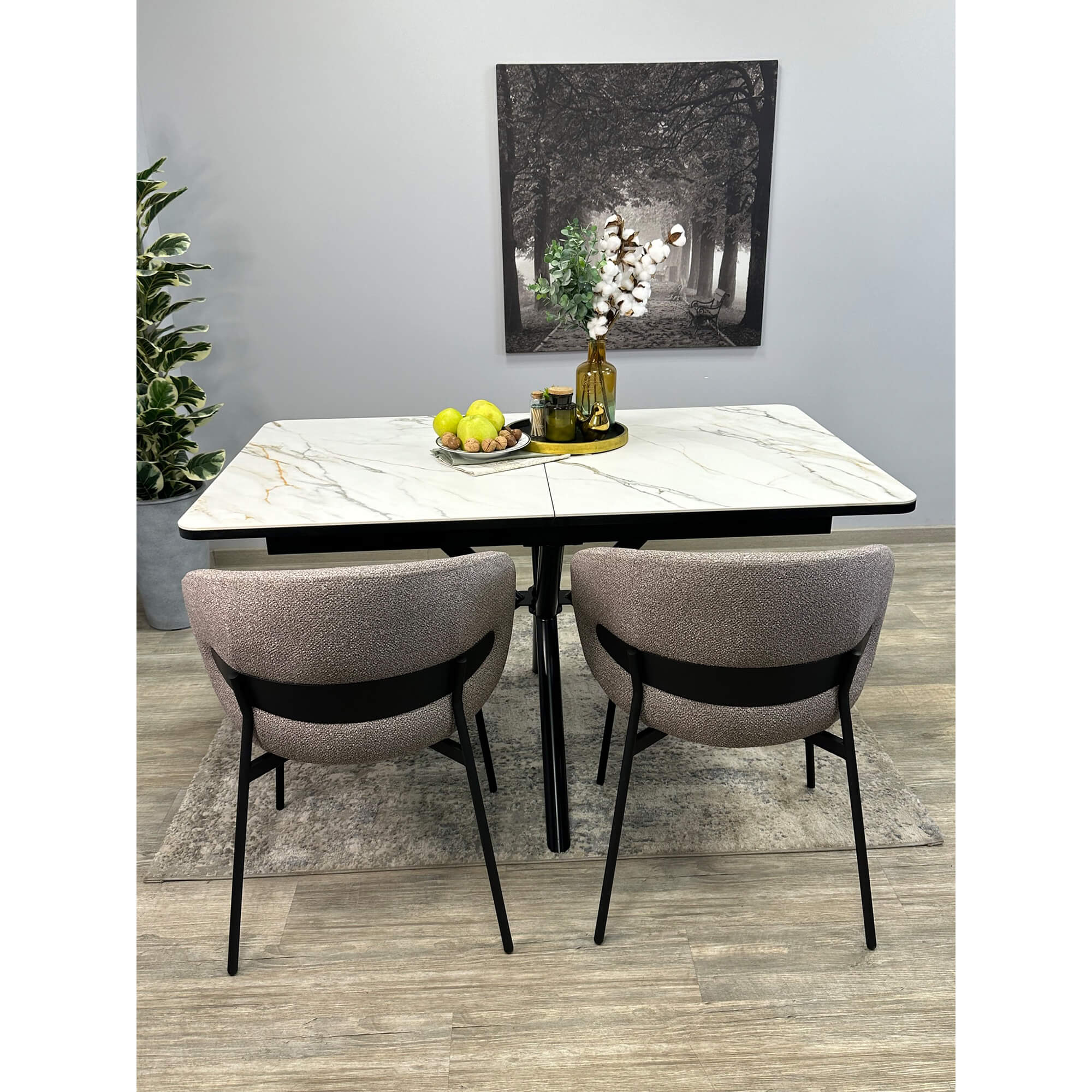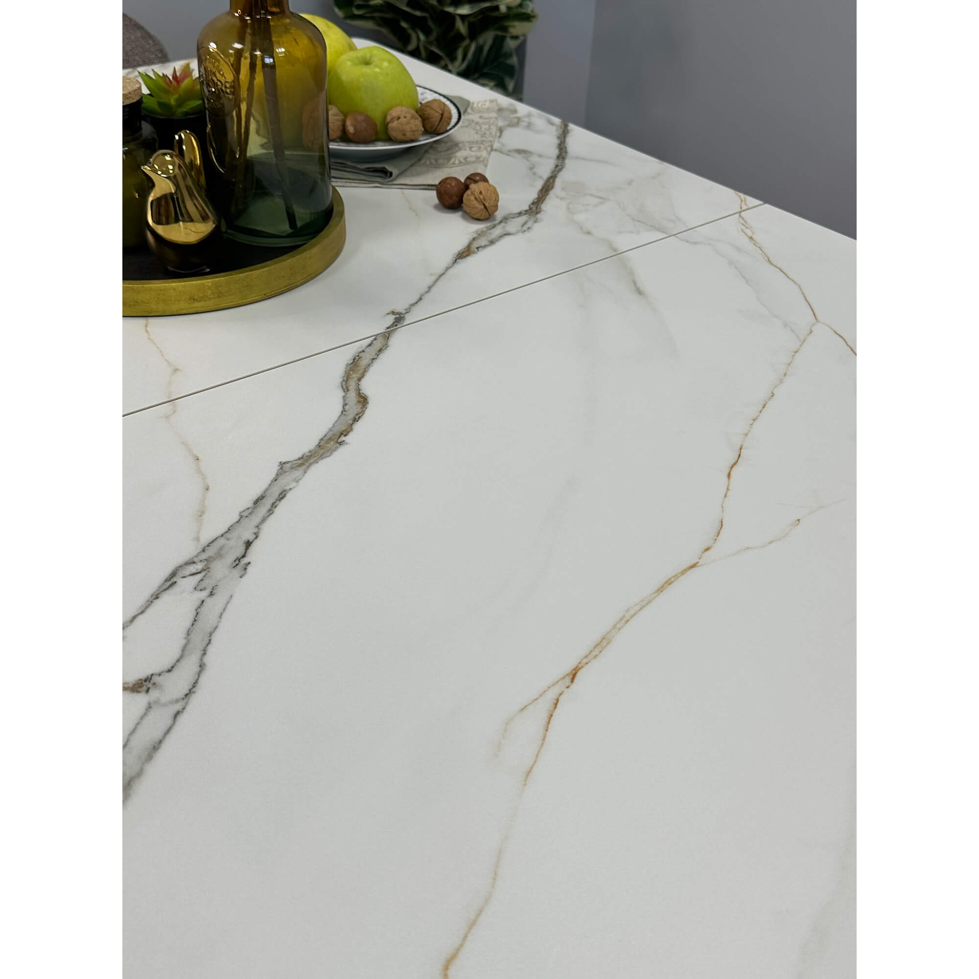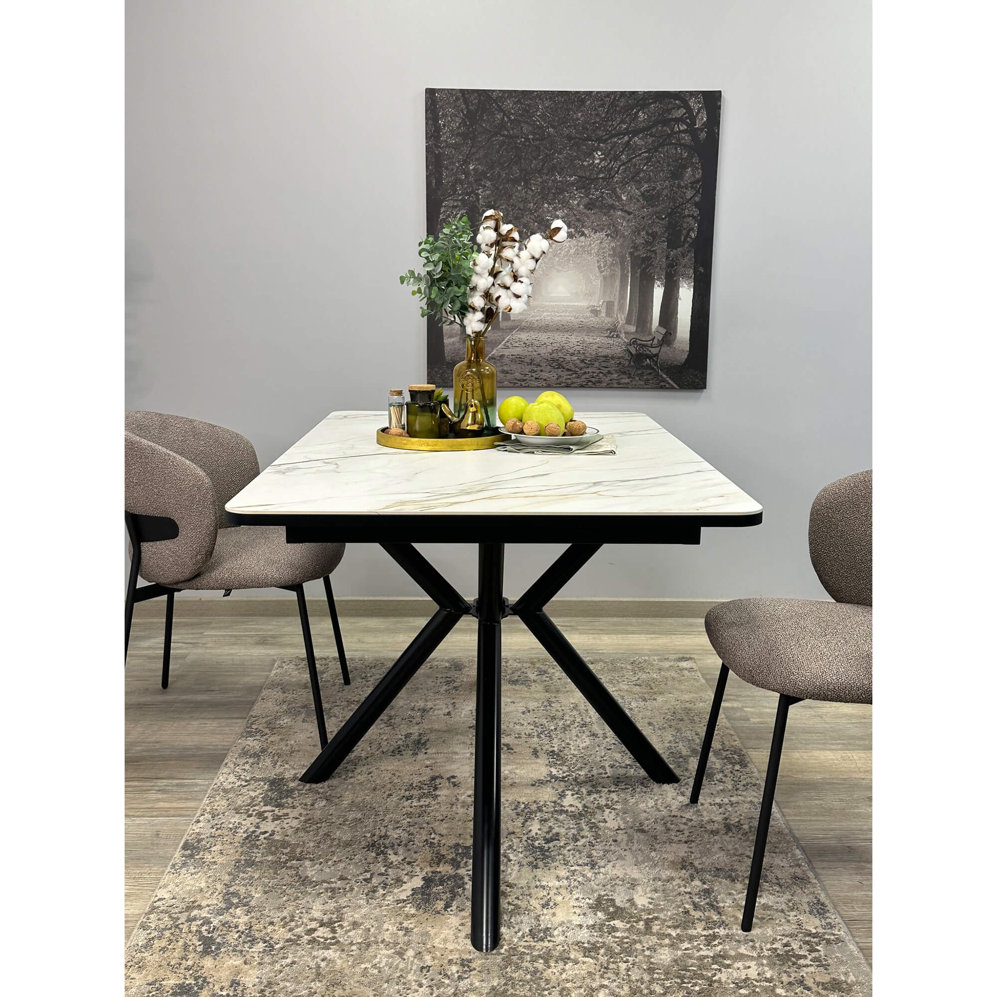 Стол обеденный Kenner DF1550 черный/керамика мрамор белый глянец