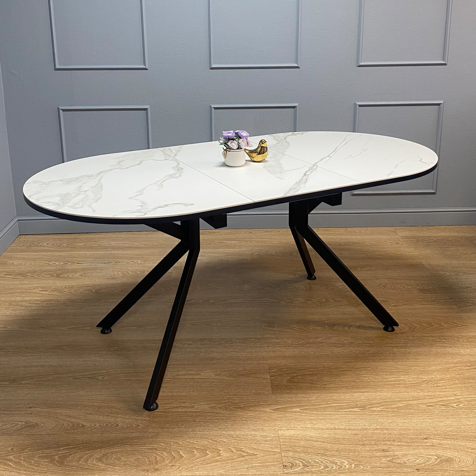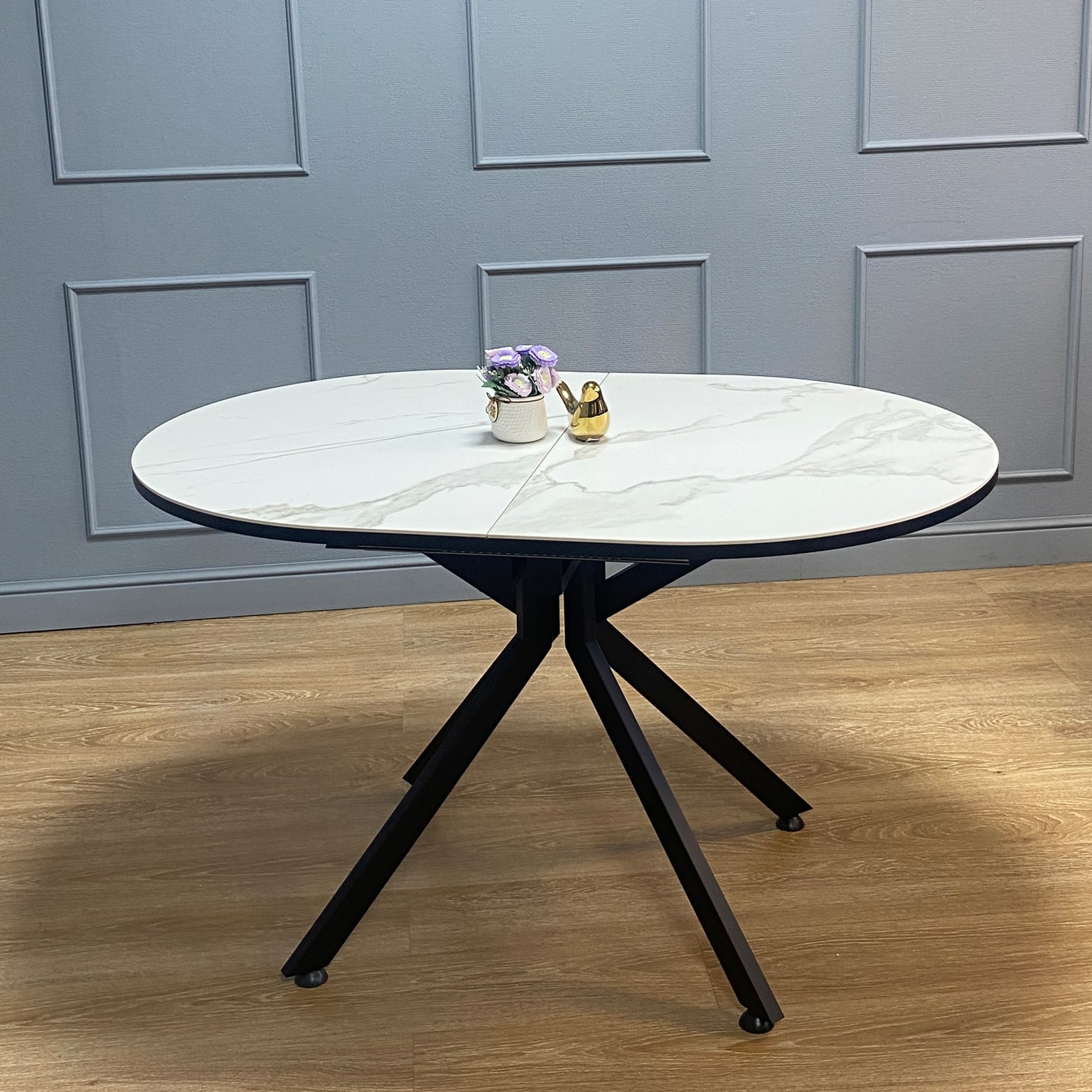 Один из лучших столов с центральной опорой на рынке - легкий визуально, с дорогим керамическим покрытием, очень устойчивый и эргономичный. Продуманы и посадка и удобная раскладка.
