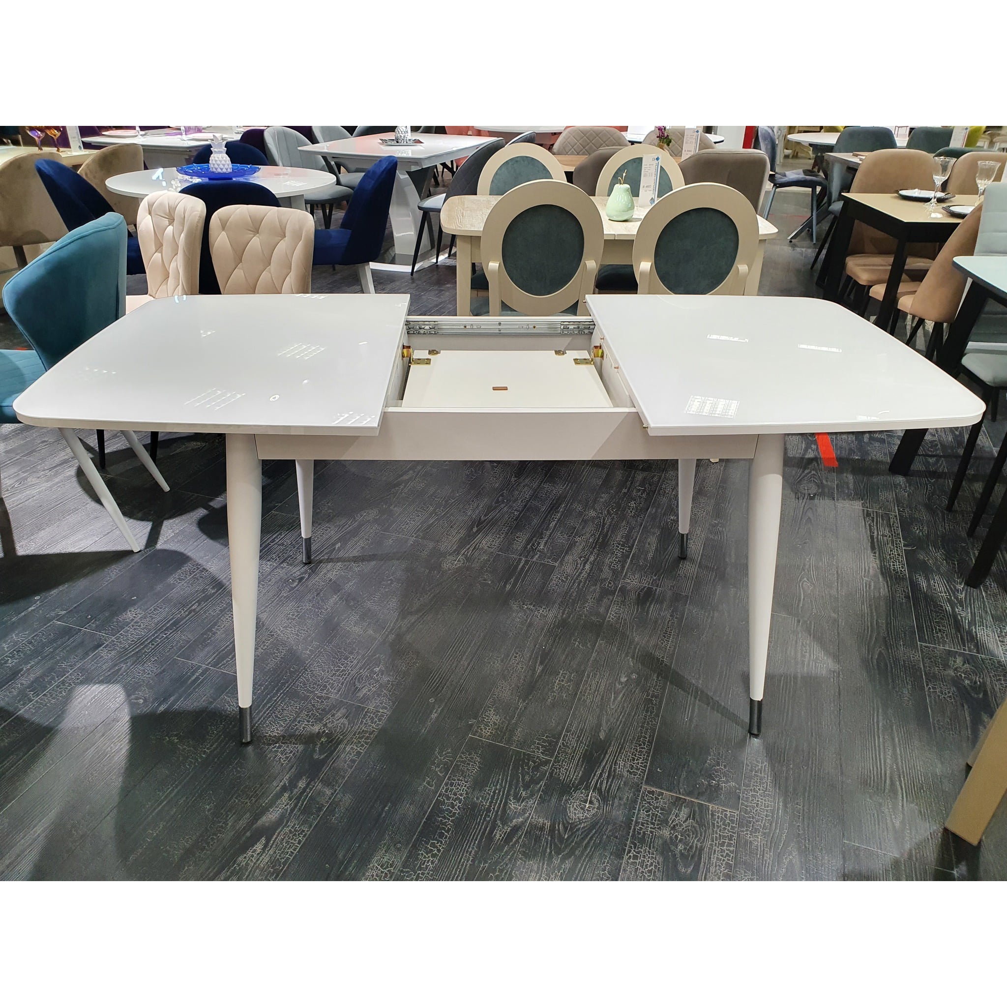 Компактный и очень функциональный стол, идеален для использования как на небольшой кухне, так и в качестве уютной обеденной зоны в гостиной. Столешница из стекла надежно защищает стол от влаги и горячего. Синхронный механизм раскладки позволяет легко раздвинуть стол одной рукой любому члену семьи. Вставка с материалом столешницы осталяет стол монолитным в разложенном состоянии. Стол максимально устойчив благодаря особому, усиленному креплению опор и регулировочным винтам.