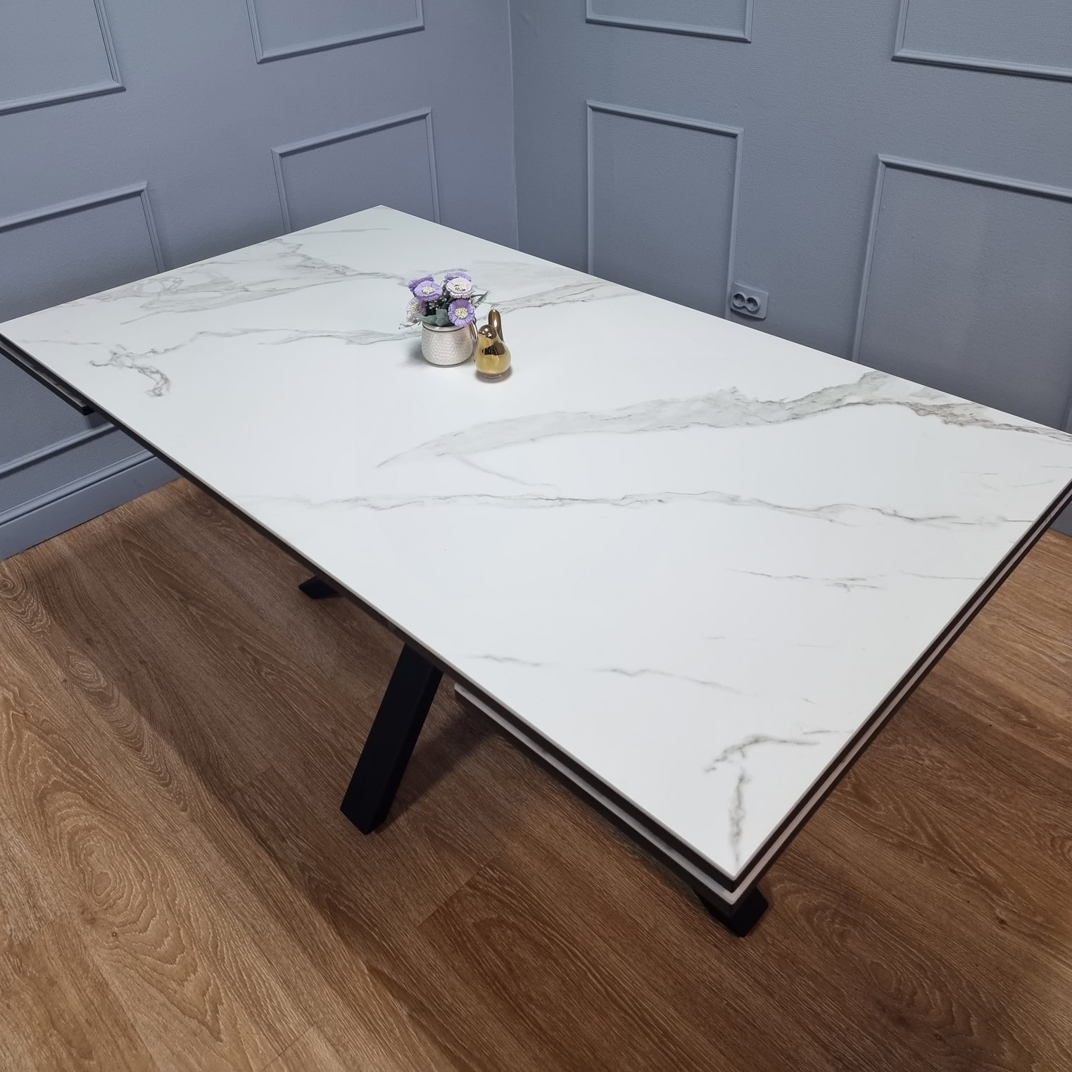 Габариты: 1600/2300х900х760 мм Материал: керамика на подложке из ЛДСП. Опоры: черный металл, покрытие - порошковая покраска, тонкий и надежный металлический профиль.