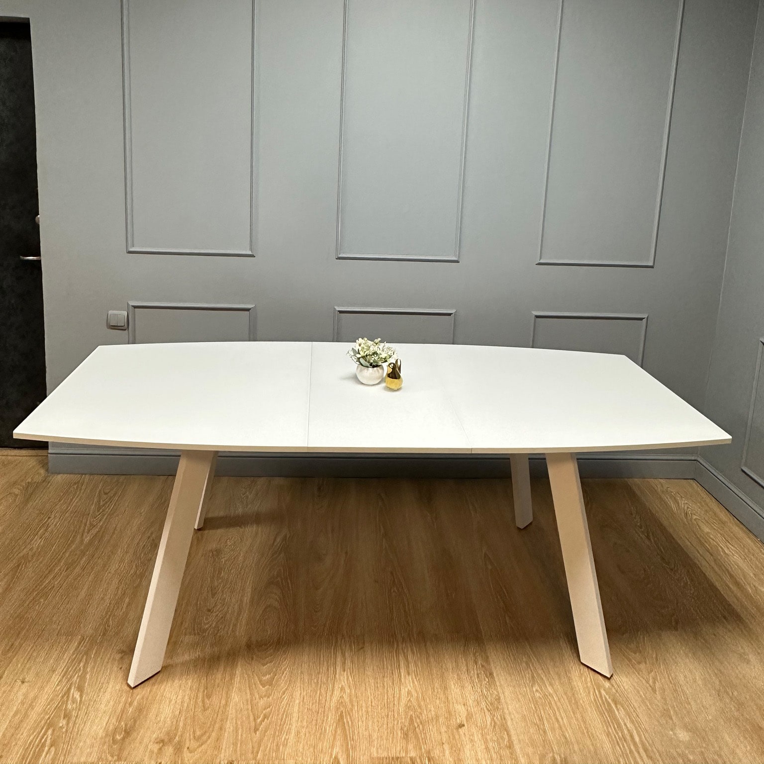 В разложенном состянии стол 2,05м, с комфортом размещает до 10 человек.
